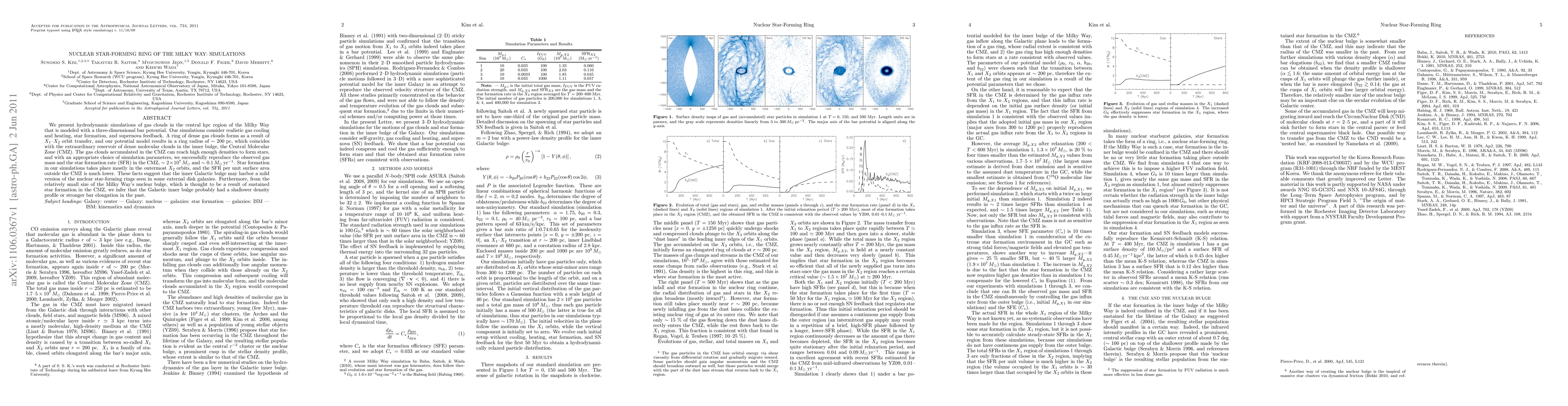 This paper presents hydrodynamic simulations of gas dynamics in the Milky Way's central region, showing a ring of dense gas clouds forming due to orbital dynamics, which aligns with the Central Molecular Zone. The simulations reproduce observed gas mass and star formation rates, suggesting the Milky Way's inner bulge may have had a milder star-forming ring in the past.