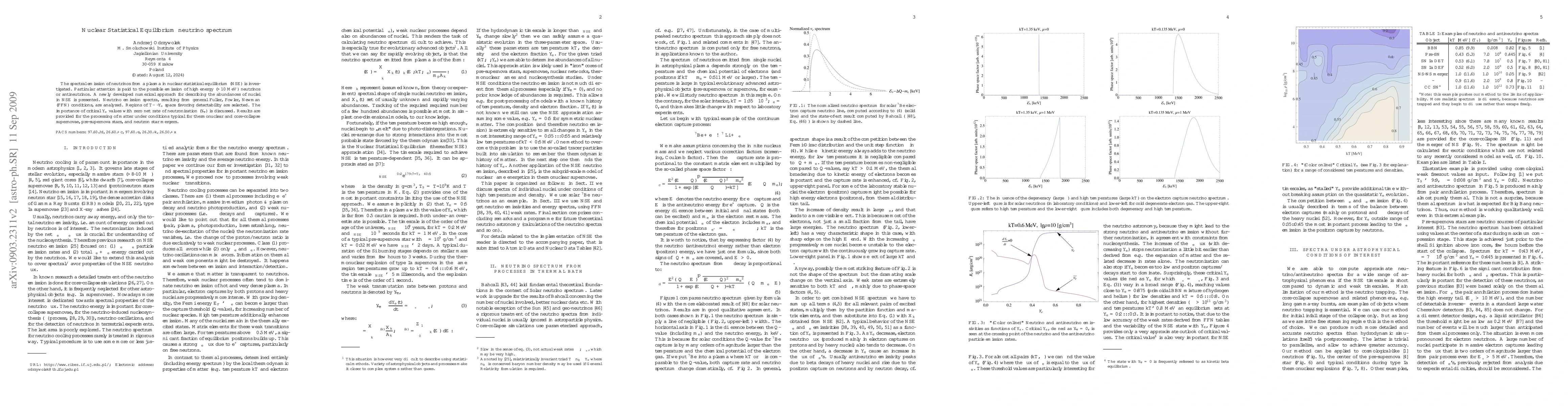 Researchers investigate neutrino emission from plasmas in nuclear statistical equilibrium, focusing on high-energy (>10 MeV) neutrinos, and identify regions of T-rho-Ye space favorable for detectability.