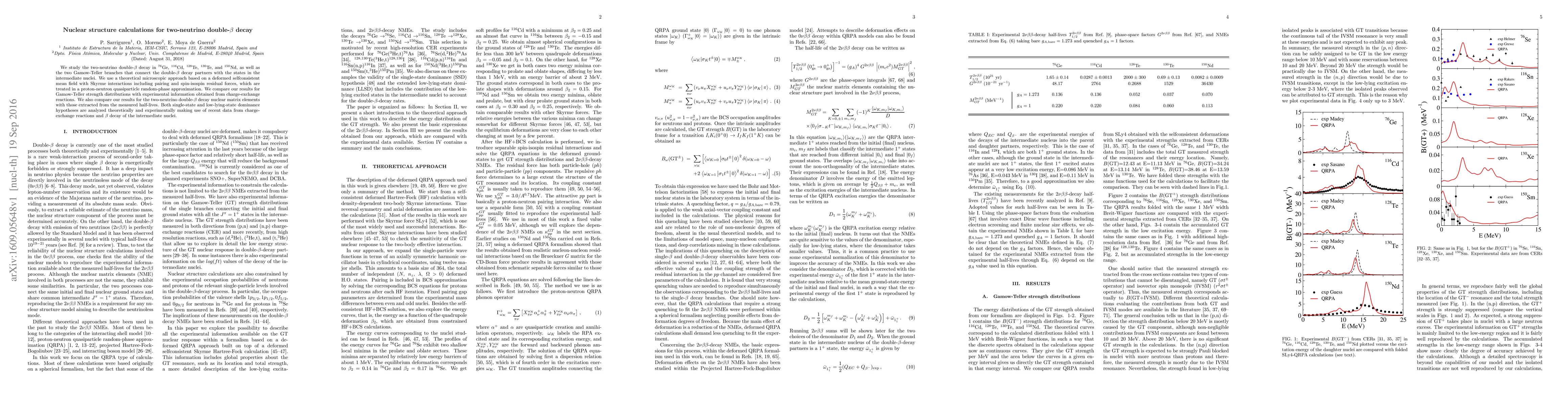 This paper investigates the two-neutrino double-beta decay in several isotopes using a microscopic theoretical approach, comparing calculated Gamow-Teller strength distributions and nuclear matrix elements with experimental data from charge-exchange reactions and beta decay. It analyzes both single-state and low-lying-state dominance hypotheses.