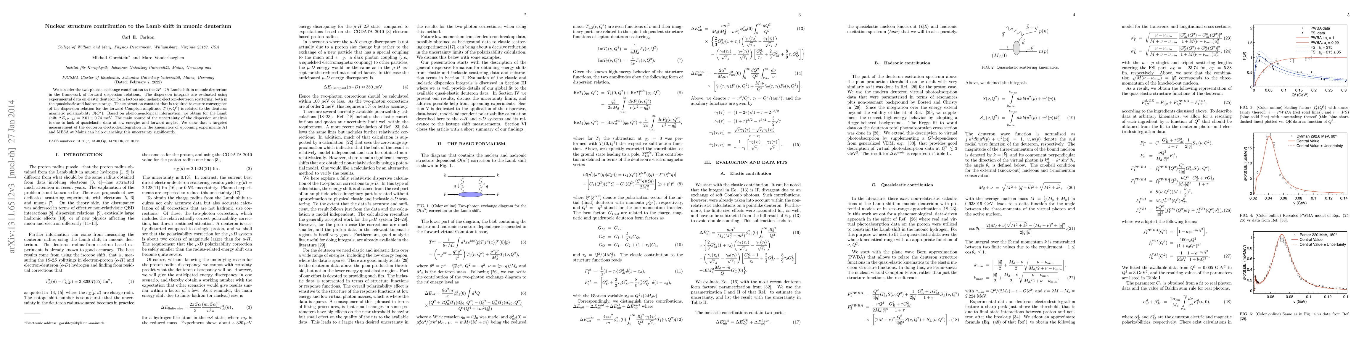 Researchers studied the Lamb shift in muonic deuterium, finding a value of 2.01 meV with significant uncertainty, which they hope to reduce through future experiments. The study used forward dispersion relations and experimental data on elastic deuteron form factors and electron-deuteron scattering.