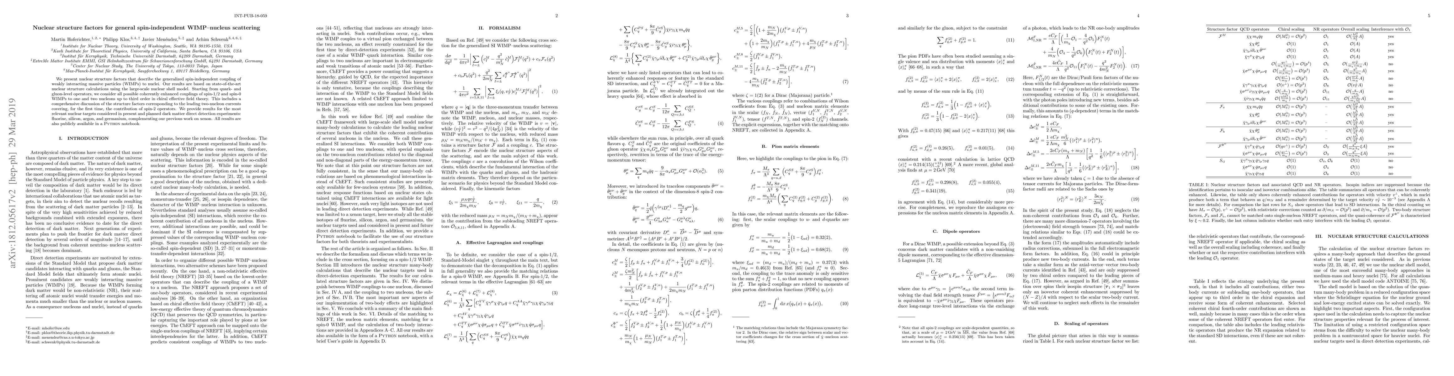 This paper presents nuclear structure factors for spin-independent WIMP-nucleus scattering, derived from advanced nuclear shell model calculations. It includes comprehensive coverage of leading two-nucleon currents and spin-2 operator contributions, providing results for key targets in dark matter detection experiments.