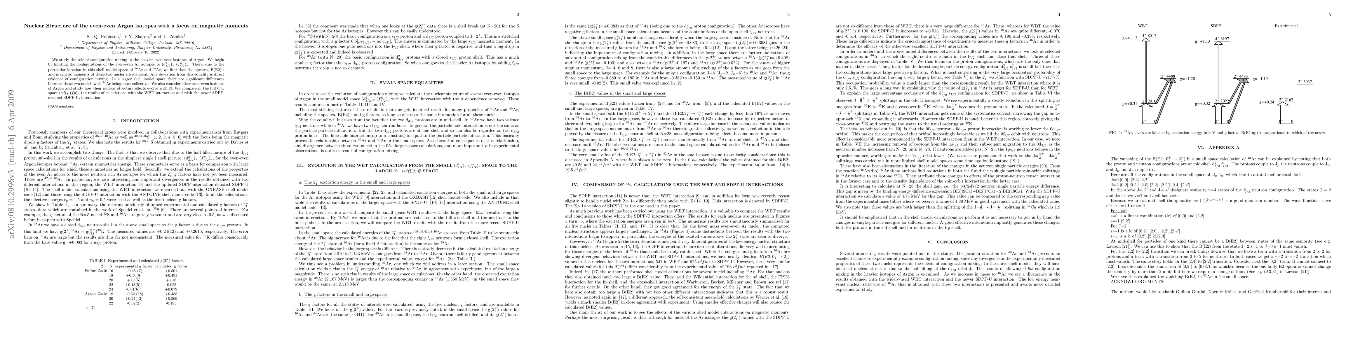 We study the role of configuration mixing in the heavier even-even isotopes of Argon. We begin by limiting the configurations of the even-even Ar isotopes to $(d_{3/2}^2)_{\pi}$ $(f_{7/2}^n)_{\nu}$. There, due to the particular location in this shell model space of $^{40}$Ar and $^{44}$Ar, we find that the spectra, B(E2)'s and magnetic moments of these two nuclei are identical. Any deviation from this equality is direct evidence of configuration mixing. In a larger shell model space there are significant differences between these two nuclei, with $^{44}$Ar being more collective. We also consider other even-even isotopes of Argon and study how their nuclear structure effects evolve with N. We compare in the full 0$\hbar \omega$ space $(sd)_{\pi}$ $(fp)_{\nu}$ the results of calculations with the WBT interaction and with the newer SDPF, denoted SDPF-U, interaction.