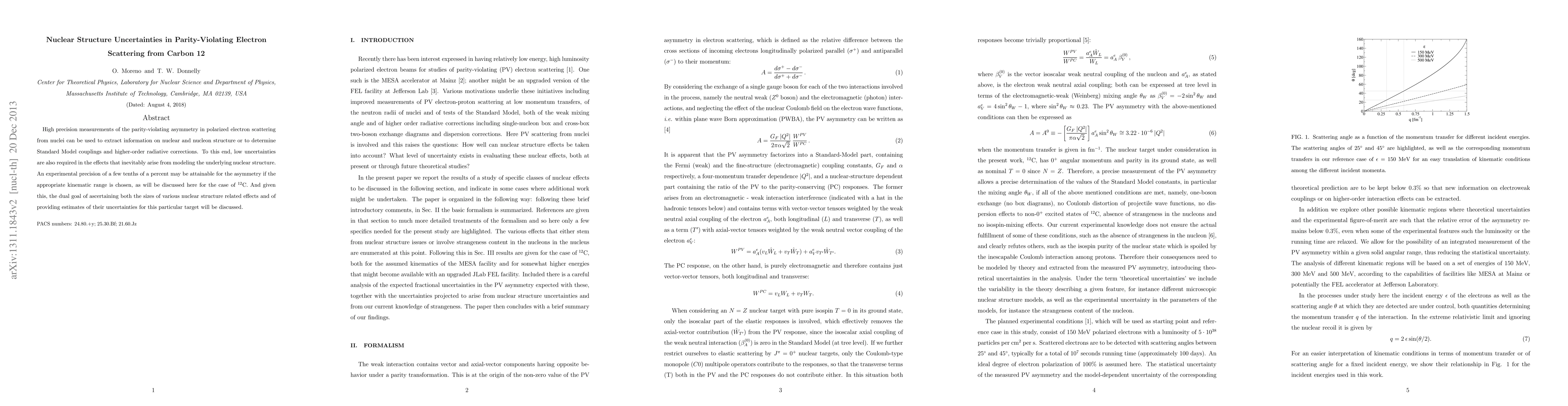 This paper investigates the nuclear structure uncertainties affecting parity-violating electron scattering in carbon-12, aiming to extract precise nuclear and nucleon structure information. It discusses the experimental precision attainable and the importance of modeling uncertainties to achieve a few-tenths-of-a-percent accuracy in the asymmetry.