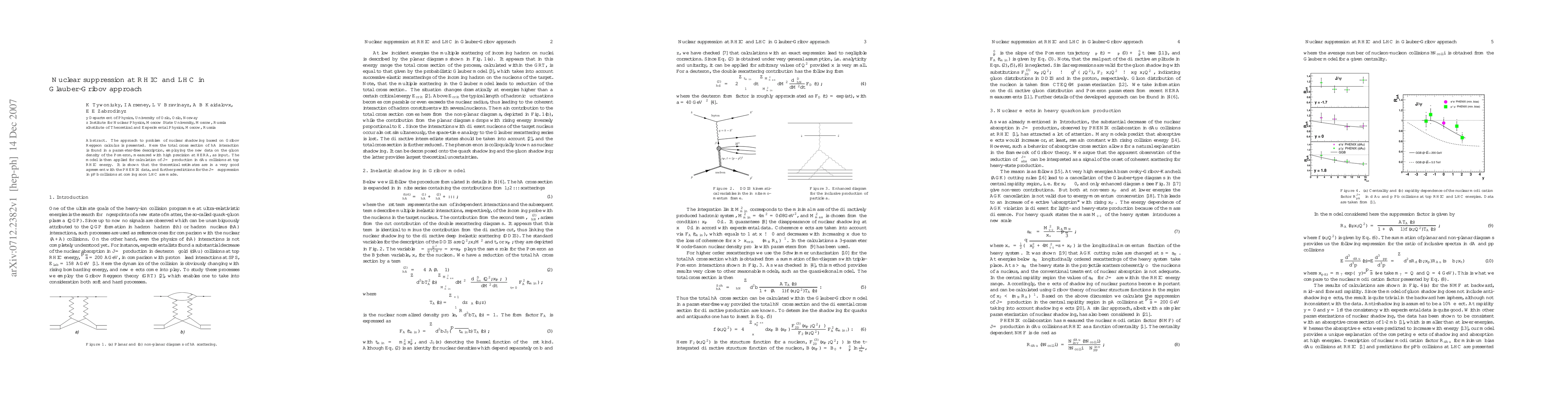This paper uses the Glauber-Gribov approach to study nuclear shadowing and calculates the total cross section for $h A$ interactions, employing high-precision gluon density data from HERA. The model accurately predicts $J/\psi$ production in $d Au$ collisions at RHIC, aligning well with PHENIX data, and forecasts $J/\psi$ suppression in $p Pb$ collisions at LHC.