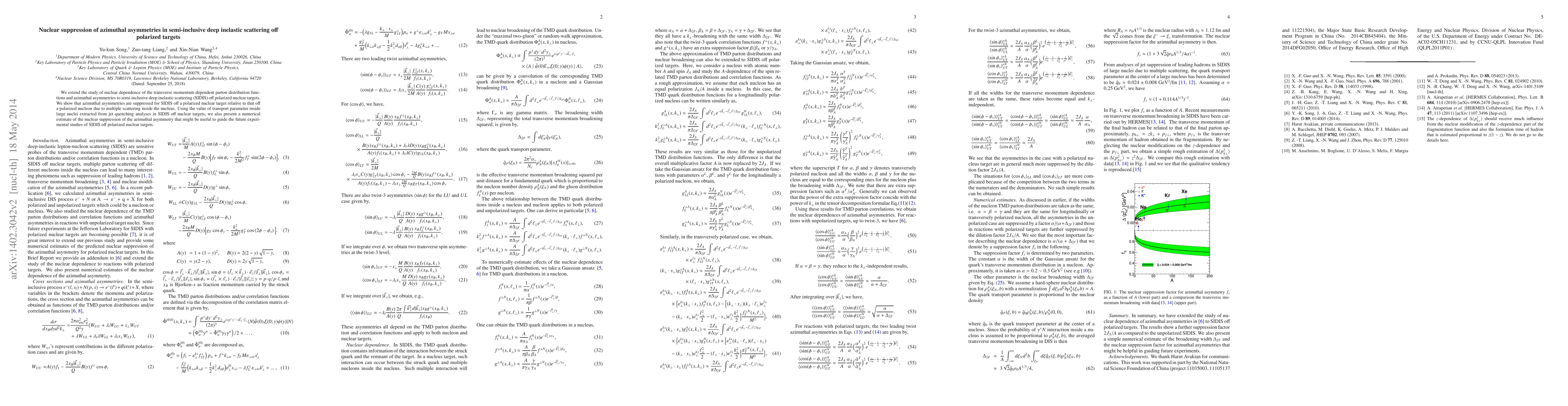 This paper explores the nuclear dependence of transverse momentum dependent parton distribution functions and azimuthal asymmetries in semi-inclusive deep inelastic scattering (SIDIS) off polarized nuclear targets. It demonstrates that azimuthal asymmetries are suppressed relative to those off a polarized nucleon due to multiple scattering effects within the nucleus.