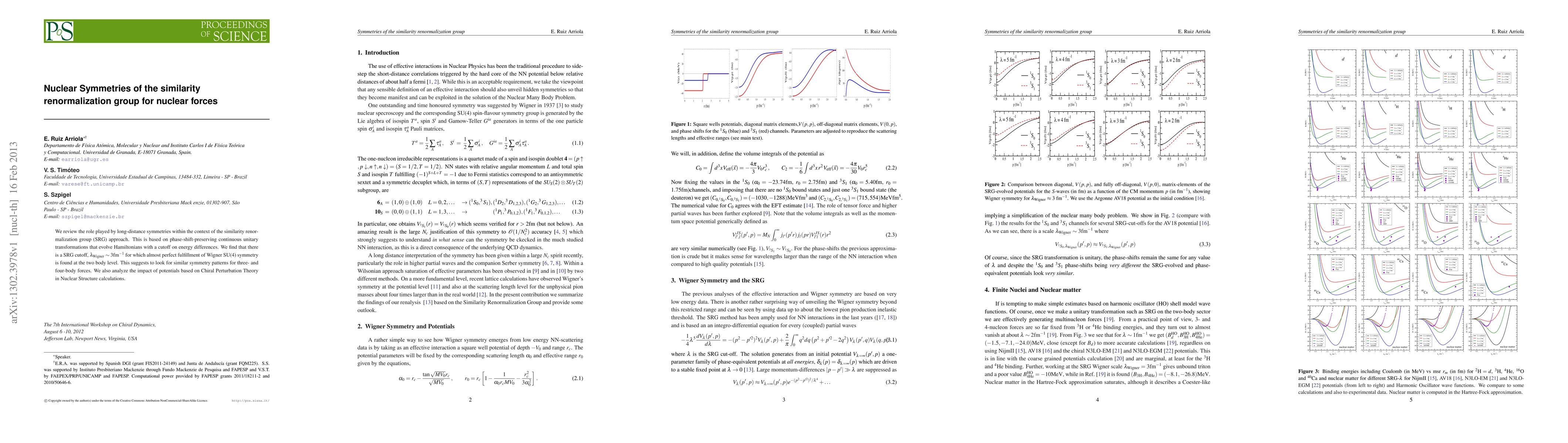 We review the role played by long-distance symmetries within the context of the similarity renormalization group approach. This is based on phase-shift-preserving continuous unitary transformations that evolve Hamiltonians with a cutoff on energy differences. We find that there is a similarity cutoff of 3/fm for which almost perfect fulfillment of Wigner SU(4) symmetry is found at the two body level. This suggests to look for similar symmetry patterns for three- and four-body forces. We also analyze the impact of potentials based on Chiral Perturbation Theory in Nuclear Structure calculations.