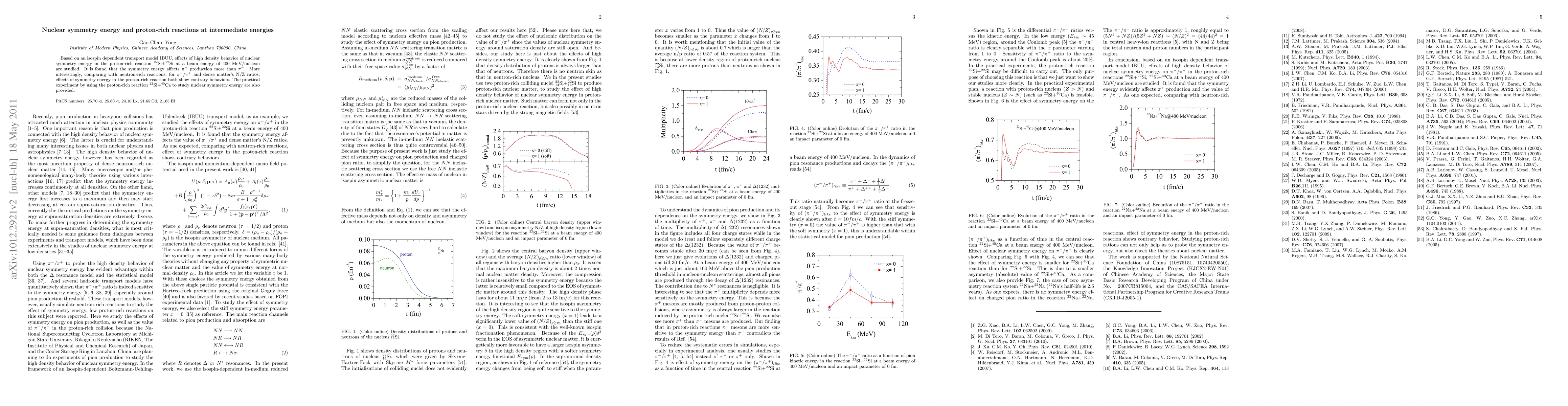 Based on an isospin dependent transport model IBUU, effects of high density behavior of nuclear symmetry energy in the proton-rich reaction $^{22}$Si+$^{22}$Si at a beam energy of 400 MeV/nucleon are studied. It is found that the symmetry energy affects $\pi^{+}$ production more than $\pi^{-}$. More interestingly, comparing with neutron-rich reactions, for $\pi^{-}/\pi^{+}$ and dense matter's N/Z ratios, effects of symmetry energy in the proton-rich reaction both show contrary behaviors. The practical experiment by using the proton-rich reaction $^{22}$Si+$^{40}$Ca to study nuclear symmetry energy are also provided.
