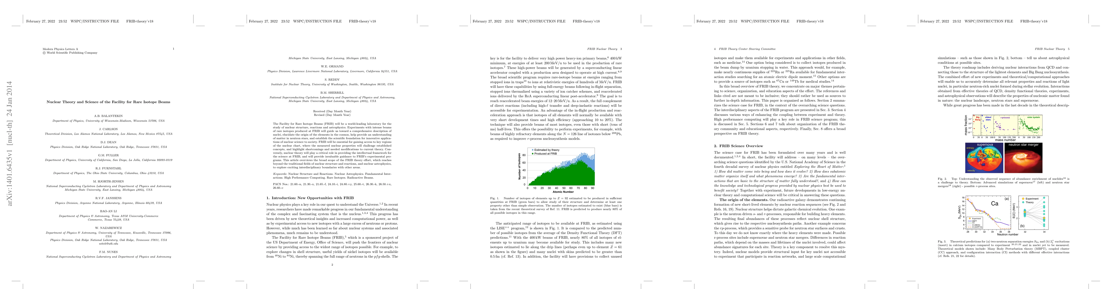The FRIB facility aims to advance nuclear science through intense beams of rare isotopes, exploring nuclear structure, reactions, and astrophysics, and bridging traditional nuclear fields with interdisciplinary research. Nuclear theory will support FRIB's experimental programs and guide theoretical advancements to address current limitations in nuclear physics.
