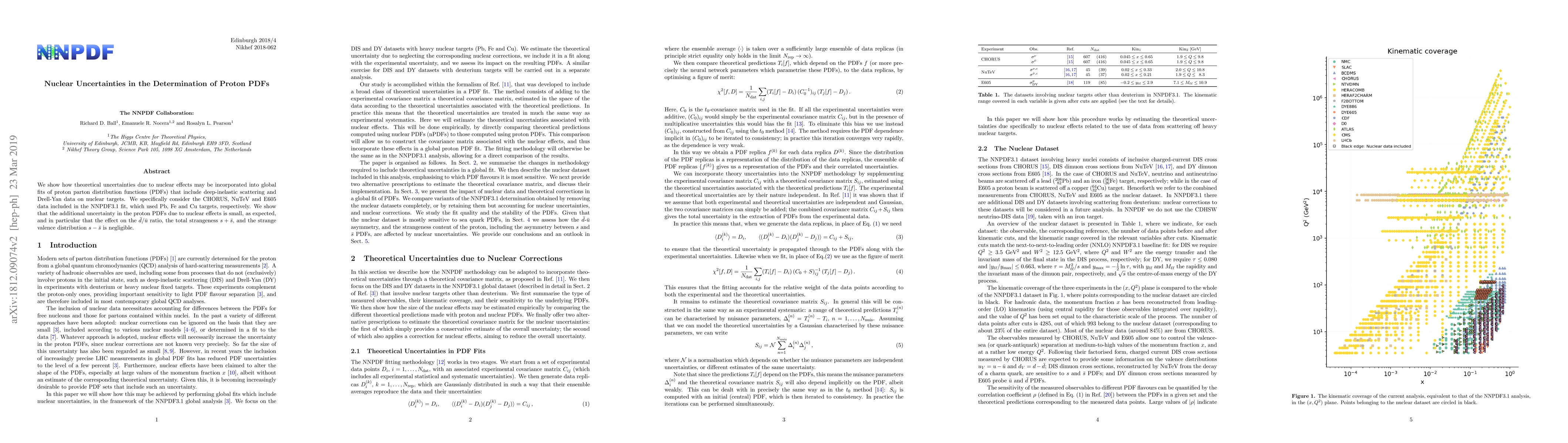 This paper demonstrates how nuclear effects' theoretical uncertainties are incorporated into global fits of proton parton distribution functions, using data from CHORUS, NuTeV, and E605. It concludes that the additional uncertainty due to nuclear effects is small, with negligible impact on the $\bar{d}/\bar{u}$ ratio, total strangeness, and strange valence distribution.