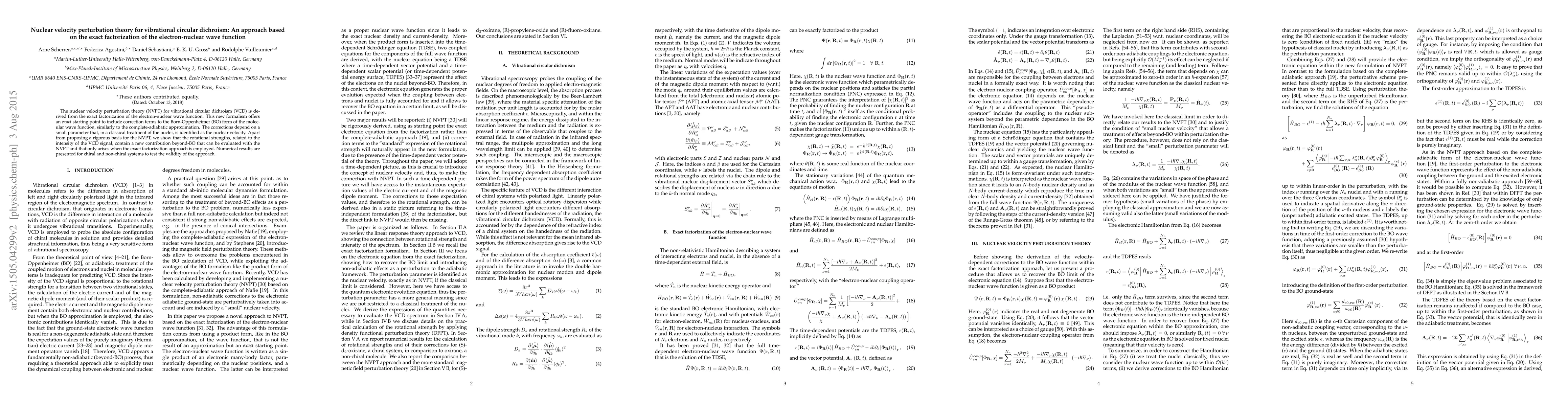 This paper develops nuclear velocity perturbation theory (NVPT) for vibrational circular dichroism (VCD) based on the exact factorization of the electron-nuclear wave function, providing a new formalism that includes beyond-Born-Oppenheimer corrections and identifies a new contribution to rotational strengths in VCD signals. Numerical tests on chiral and non-chiral systems validate the proposed approach.