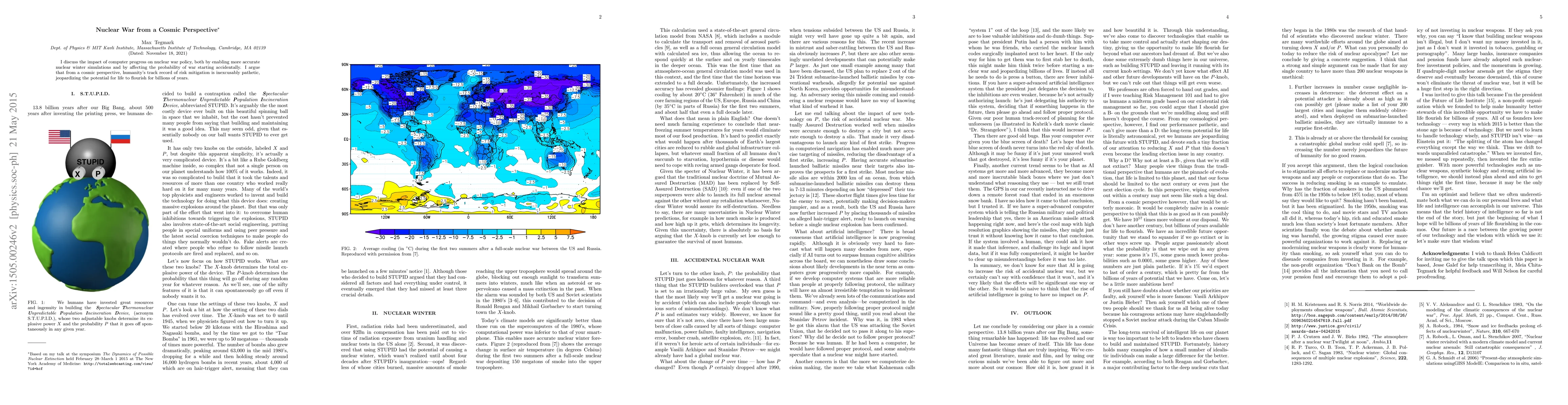 Summary: This paper explores how advancements in computer technology have improved nuclear war simulations and accidental war probabilities, while critiquing humanity's poor track record in mitigating risks, which threatens long-term life potential in the universe.