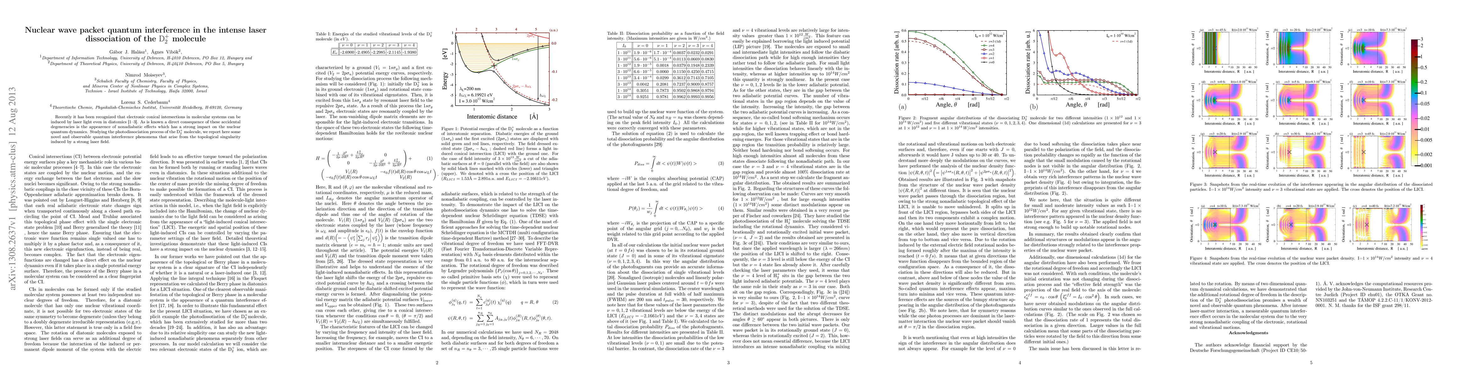 Recently it has been recognized that electronic conical intersections in molecular systems can be induced by laser light even in diatomics. As is known a direct consequence of these accidental degeneracies is the appearence of nonadiabatic effects which has a strong impact on the nuclear quantum dynamics. Studying the photodissociation process of the $\mathrm{D}_{2}^{+}$ molecule, we report here some novel and observable quantum interference phenomena that arise from the topological singularity induced by a strong laser field.