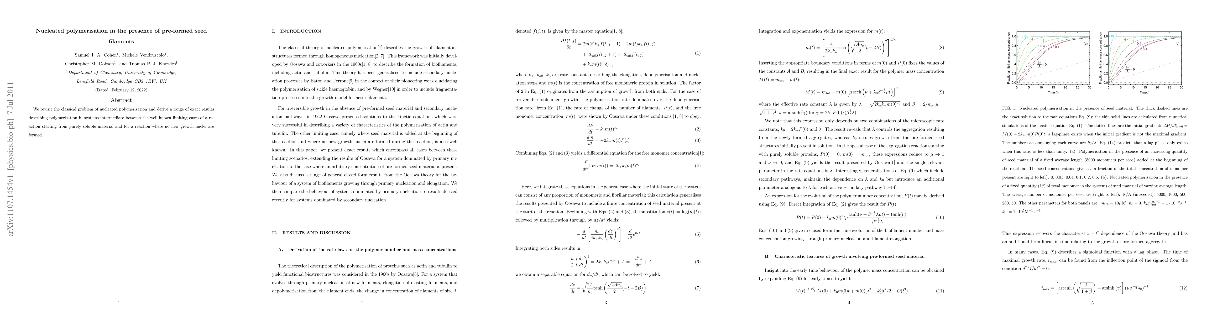 We revisit the classical problem of nucleated polymerisation and derive a range of exact results describing polymerisation in systems intermediate between the well-known limiting cases of a reaction starting from purely soluble material and for a reaction where no new growth nuclei are formed.