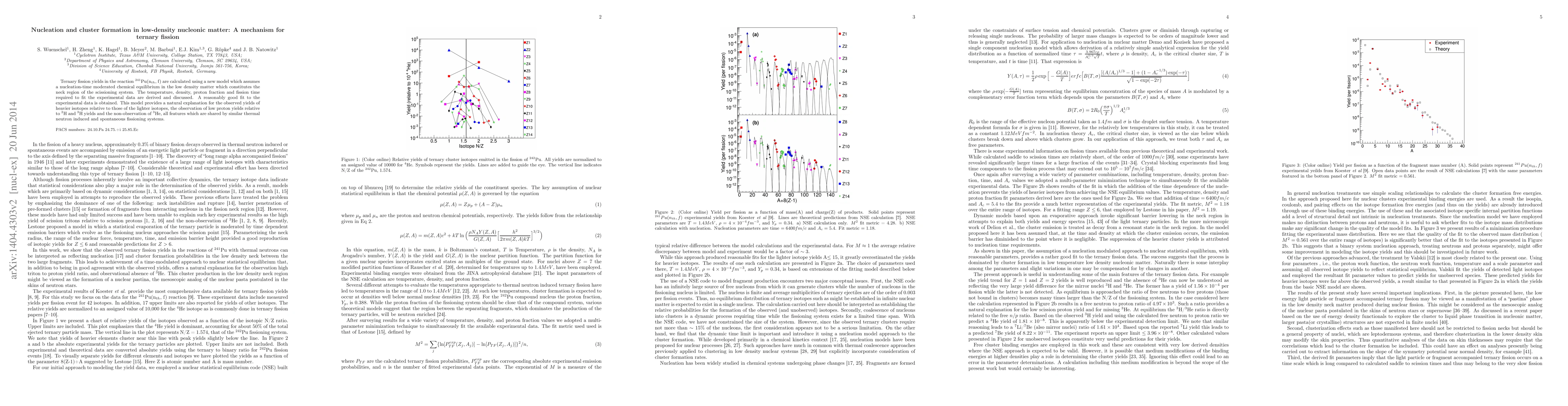 Ternary fission yields in the reaction 241Pu(nth,f) are calculated using a new model which assumes a nucleation-time moderated chemical equilibrium in the low density matter which constitutes the neck region of the scissioning system. The temperature, density, proton fraction and fission time required to fit the experimental data are derived and discussed. A reasonably good fit to the experimental data is obtained. This model provides a natural explanation for the observed yields of heavier isotopes relative to those of the lighter isotopes, the observation of low proton yields relative to 2H and 3H yields and the non-observation of 3He, all features which are shared by similar thermal neutron induced and spontaneous fissioning systems.
