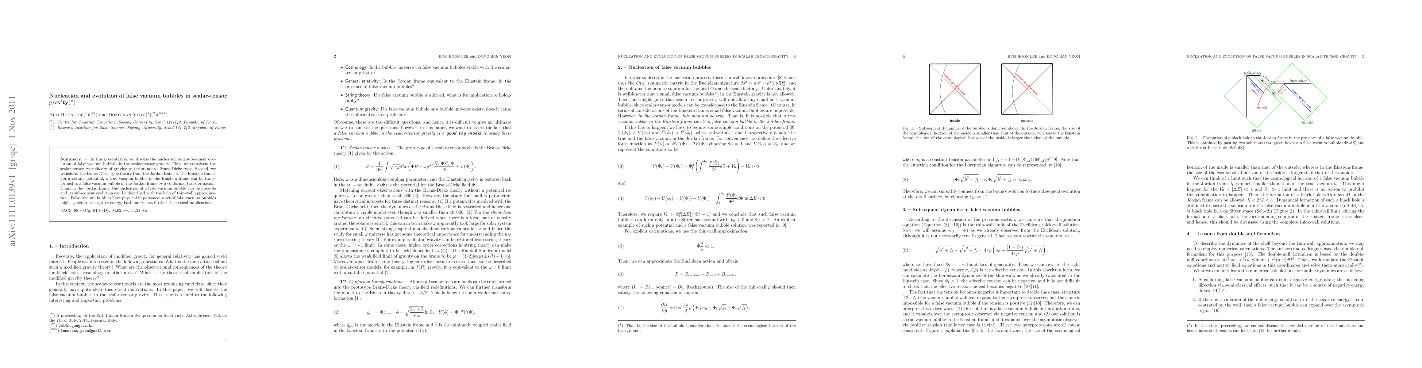 The paper introduces a method to transform scalar-tensor gravity theories into the Einstein frame and then into the Jordan frame, allowing for the analysis of false vacuum bubble nucleation and evolution in scalar-tensor gravity.