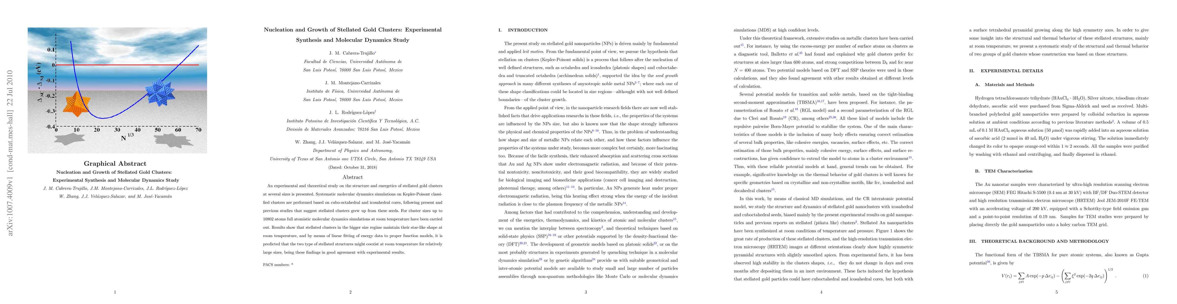 This paper presents an experimental and theoretical study on the formation and stability of stellated gold clusters, showing that larger clusters maintain their star-like shape at room temperature. The study combines molecular dynamics simulations and linear fitting of energy data to predict the coexistence of different stellated structures for large sizes, aligning well with experimental observations.