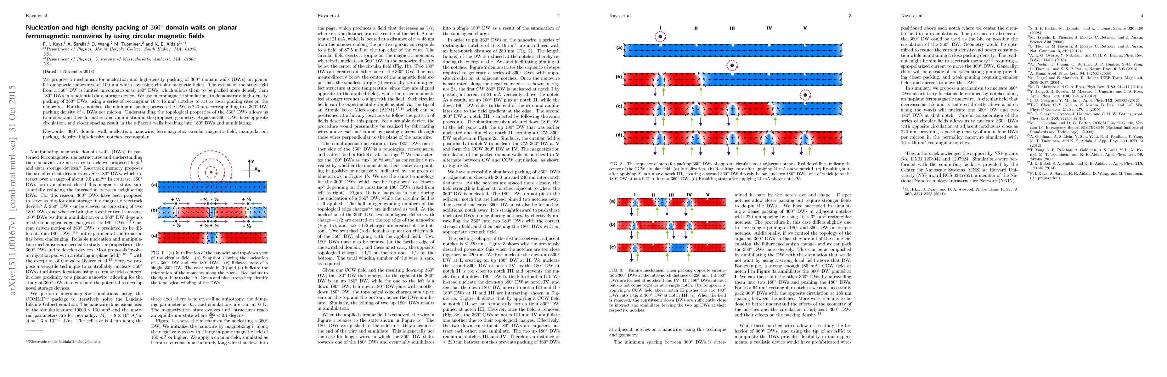 This research proposes a method using circular magnetic fields to create high-density packing of 360-degree domain walls on 100 nm wide ferromagnetic nanowires. Micromagnetic simulations demonstrate that notches can act as pinning sites, allowing a minimum spacing of 240 nm between walls, or 4 DWs per micron. This could enhance data storage device capacity by leveraging the unique properties of 360-degree walls.