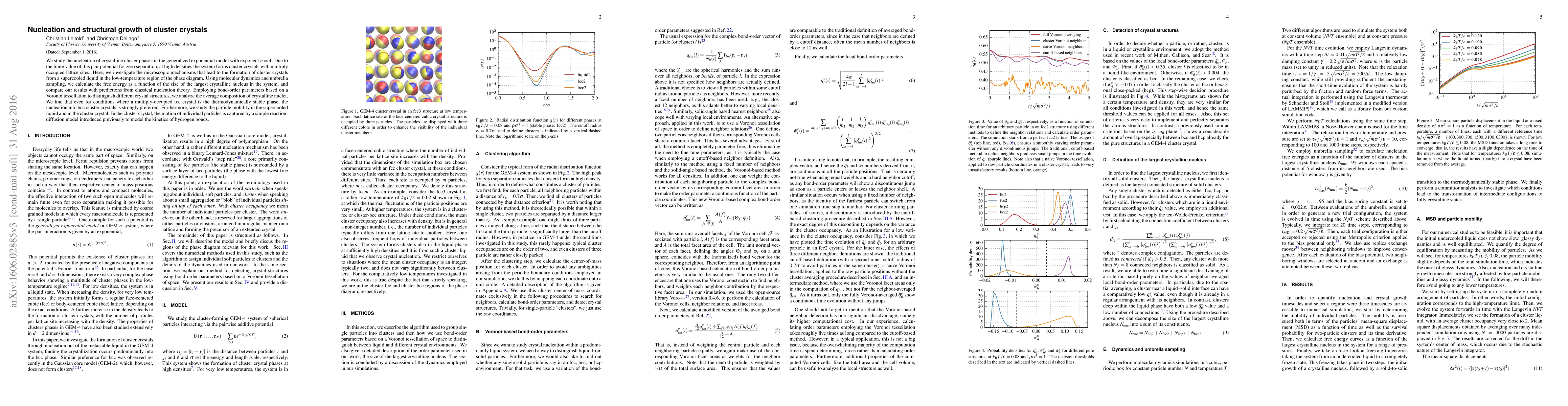 This study explores the formation of cluster crystals in a supercooled liquid using molecular dynamics and umbrella sampling. It finds that, even when multiply-occupied fcc crystals are thermodynamically stable, bcc cluster crystals are preferred for nucleation. The paper also models particle motion in cluster crystals with a reaction-diffusion model.
