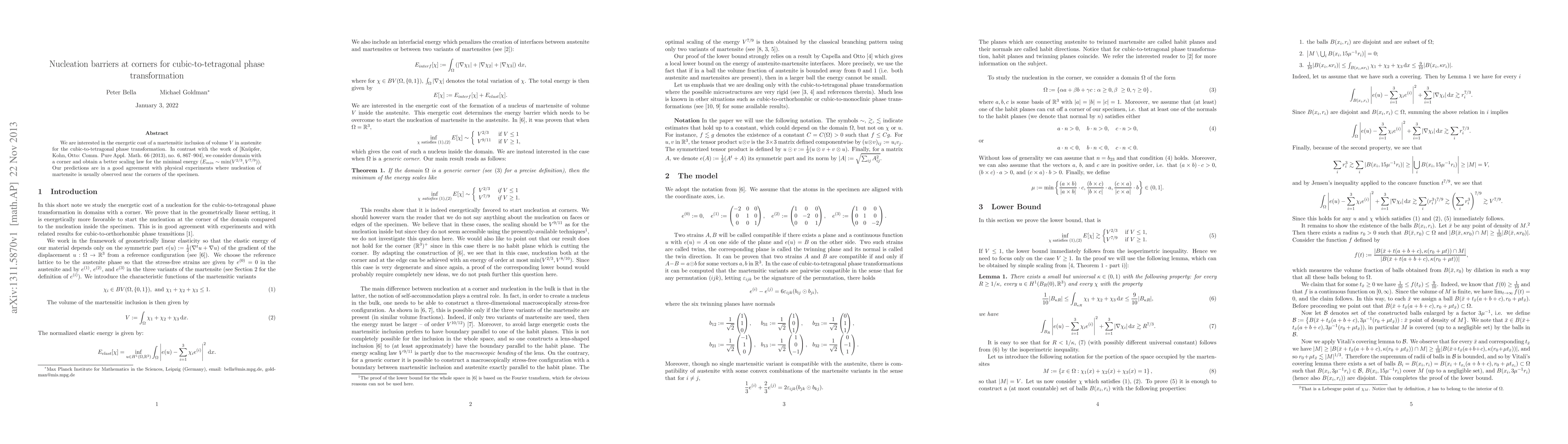 Researchers found a better scaling law for the minimal energy of a cubic-to-tetragonal phase transformation in austenite, which agrees with physical experiments showing martensite nucleation near corners.