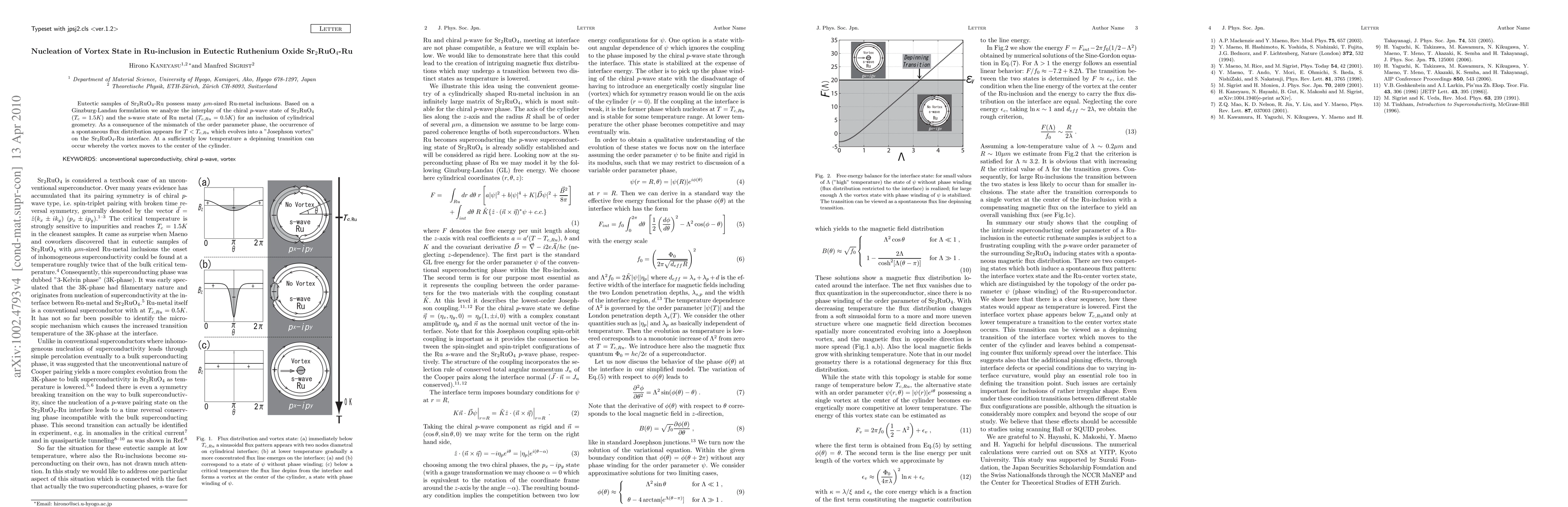 This paper investigates the nucleation of a vortex state in Ru-inclusions within eutectic Sr2RuO4-Ru samples, revealing the spontaneous flux distribution and formation of a "Josephson vortex" due to the phase mismatch between the chiral p-wave state of Sr2RuO4 and the s-wave state of Ru metal, leading to a depinning transition at low temperatures.