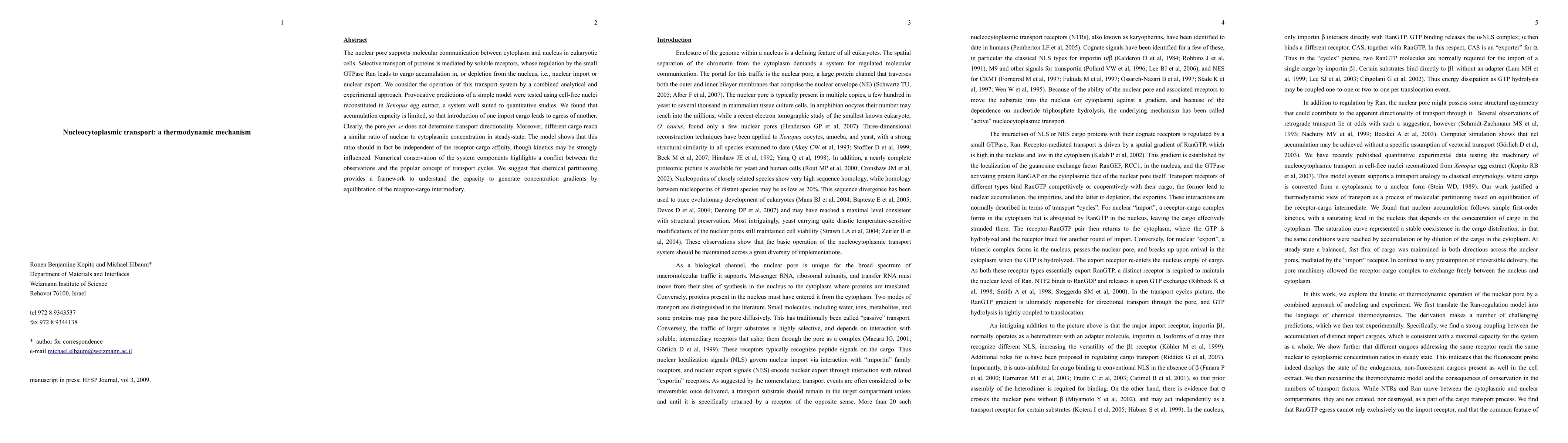 The nuclear pore supports molecular communication between cytoplasm and nucleus in eukaryotic cells. Selective transport of proteins is mediated by soluble receptors, whose regulation by the small GTPase Ran leads to cargo accumulation in, or depletion from the nucleus, i.e., nuclear import or nuclear export. We consider the operation of this transport system by a combined analytical and experimental approach. Provocative predictions of a simple model were tested using cell-free nuclei reconstituted in Xenopus egg extract, a system well suited to quantitative studies. We found that accumulation capacity is limited, so that introduction of one import cargo leads to egress of another. Clearly, the pore per se does not determine transport directionality. Moreover, different cargo reach a similar ratio of nuclear to cytoplasmic concentration in steady-state. The model shows that this ratio should in fact be independent of the receptor-cargo affinity, though kinetics may be strongly influenced. Numerical conservation of the system components highlights a conflict between the observations and the popular concept of transport cycles. We suggest that chemical partitioning provides a framework to understand the capacity to generate concentration gradients by equilibration of the receptor-cargo intermediary.