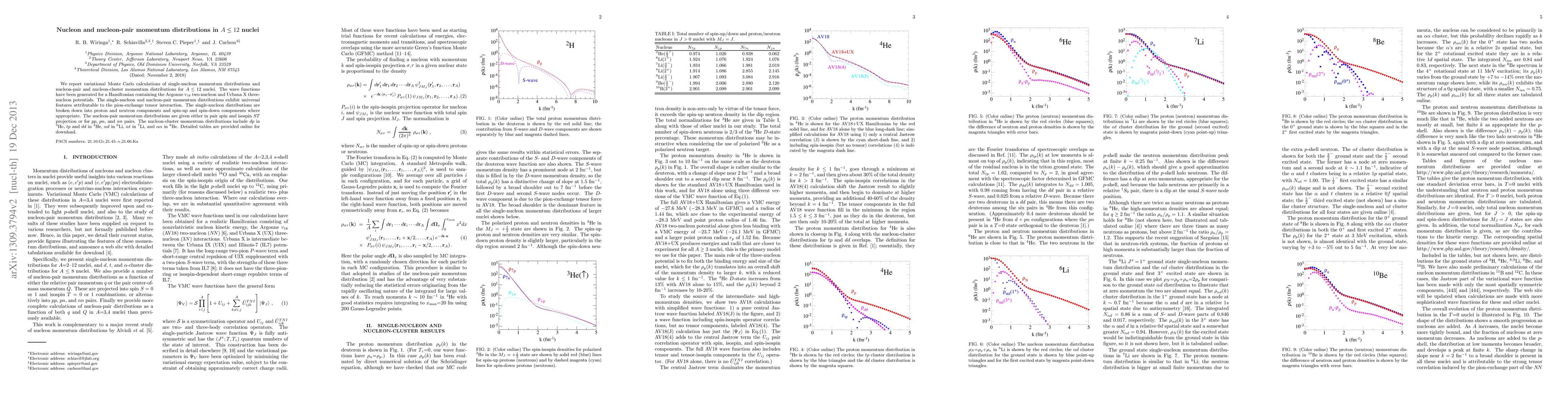 We report variational Monte Carlo calculations of single-nucleon momentum distributions for A <= 12 nuclei and nucleon-pair and nucleon-cluster momentum distributions for A <= 8. The wave functions have been generated for a Hamiltonian containing the Argonne v18 two-nucleon and Urbana X three-nucleon potentials. The single-nucleon and nucleon-pair momentum distributions exhibit universal features attributable to the one-pion-exchange tensor interaction. The single-nucleon distributions are broken down into proton and neutron components and spin-up and spin-down components where appropriate. The nucleon-pair momentum distributions are given separately for pp and pn pairs. The nucleon-cluster momentum distributions include dp in 3He, tp and dd in 4He, alpha-d in 6Li, alpha-t in 7Li, and alpha-alpha in 8Be. Detailed tables are provided on-line for download.