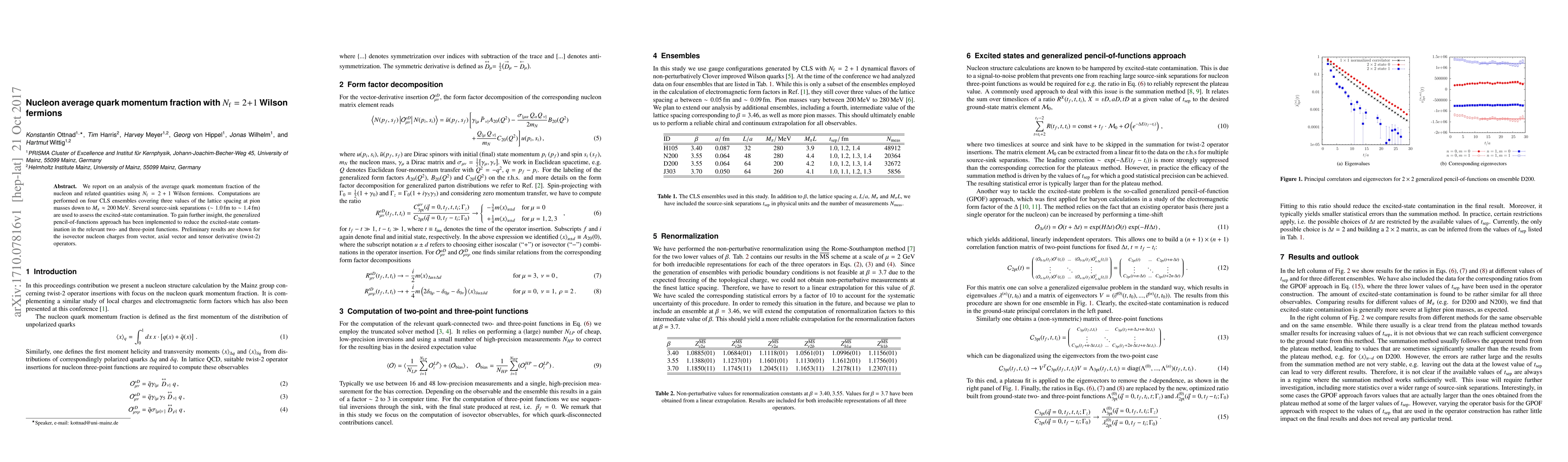 We report on an analysis of the average quark momentum fraction of the nucleon and related quantities using $N_\mathrm{f}=2+1$ Wilson fermions. Computations are performed on four CLS ensembles covering three values of the lattice spacing at pion masses down to $M_\pi \approx 200\,\mathrm{MeV}$. Several source-sink separations ($\sim 1.0\,\mathrm{fm}$ to $\sim 1.4\,\mathrm{fm}$) are used to assess the excited-state contamination. To gain further insight, the generalized pencil-of-functions approach has been implemented to reduce the excited-state contamination in the relevant two- and three-point functions. Preliminary results are shown for the isovector nucleon charges from vector, axial vector and tensor derivative (twist-2) operators.