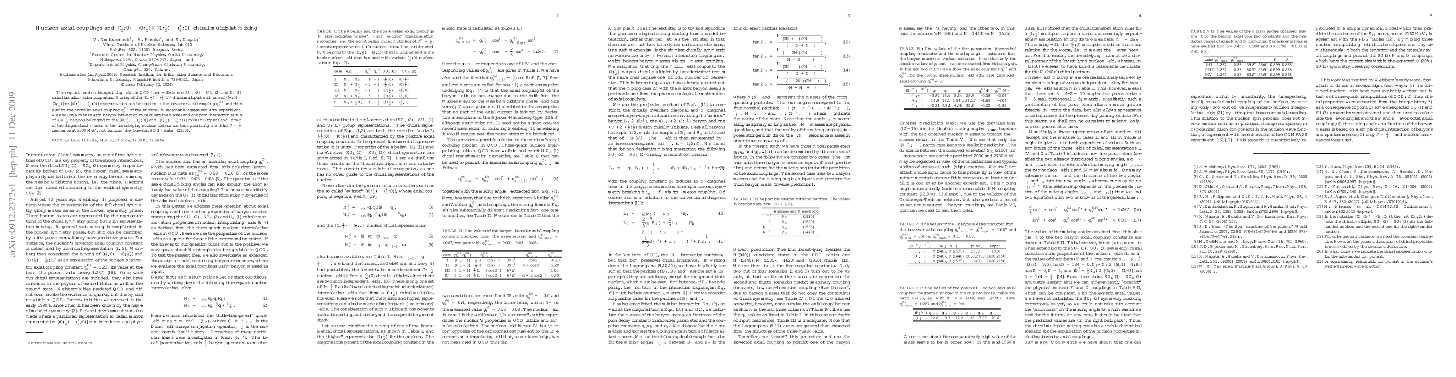 This paper investigates the mixing between chiral multiplets in QCD to fit the isovector axial coupling \( g_A(1) \) and predict the isoscalar axial coupling \( g_A(0) \), achieving reasonable experimental agreement. It also uses chiral meson-baryon interactions to predict the masses and one-pion interaction terms of J=1/2 baryons, forecasting a new J=1/2 resonance at 2030 MeV.