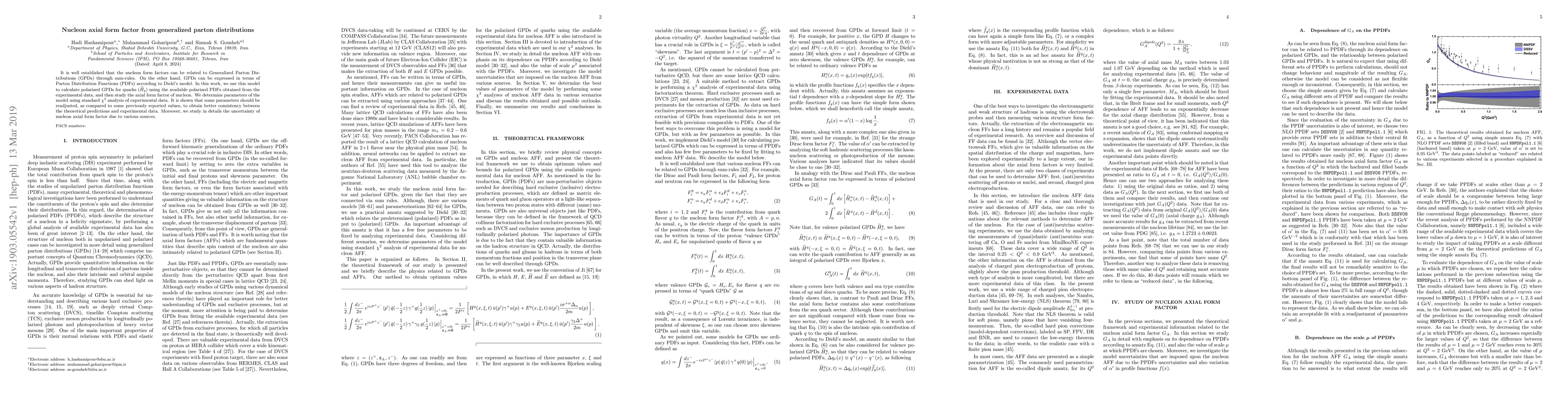 This paper investigates the nucleon axial form factor using Generalized Parton Distributions (GPDs) and relates them to Parton Distribution Functions (PDFs) via Diehl's model. The study adjusts model parameters through a $\chi^2$ analysis to improve consistency with experimental data and examines the uncertainties affecting the axial form factor.