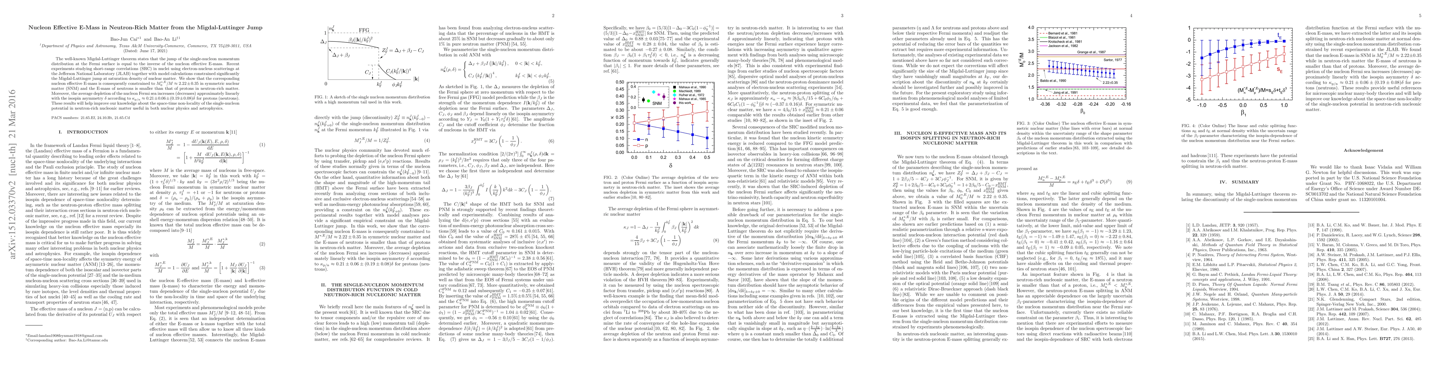 The well-known Migdal-Luttinger theorem states that the jump of the single-nucleon momentum distribution at the Fermi surface is equal to the inverse of the nucleon effective E-mass. Recent experiments studying short-range correlations (SRC) in nuclei using electron-nucleus scatterings at the Jefferson National Laboratory (JLAB) together with model calculations constrained significantly the Migdal-Luttinger jump at saturation density of nuclear matter. We show that the corresponding nucleon effective E-mass is consequently constrained to $M_0^{\ast,\rm{E}}/M\approx2.22\pm0.35$ in symmetric nuclear matter (SNM) and the E-mass of neutrons is smaller than that of protons in neutron-rich matter. Moreover, the average depletion of the nucleon Fermi sea increases (decreases) approximately linearly with the isospin asymmetry $\delta$ according to $\kappa_{\rm{p}/\rm{n}}\approx 0.21\pm0.06 \pm (0.19\pm0.08)\delta$ for protons (neutrons). These results will help improve our knowledge about the space-time non-locality of the single-nucleon potential in neutron-rich nucleonic matter useful in both nuclear physics and astrophysics.