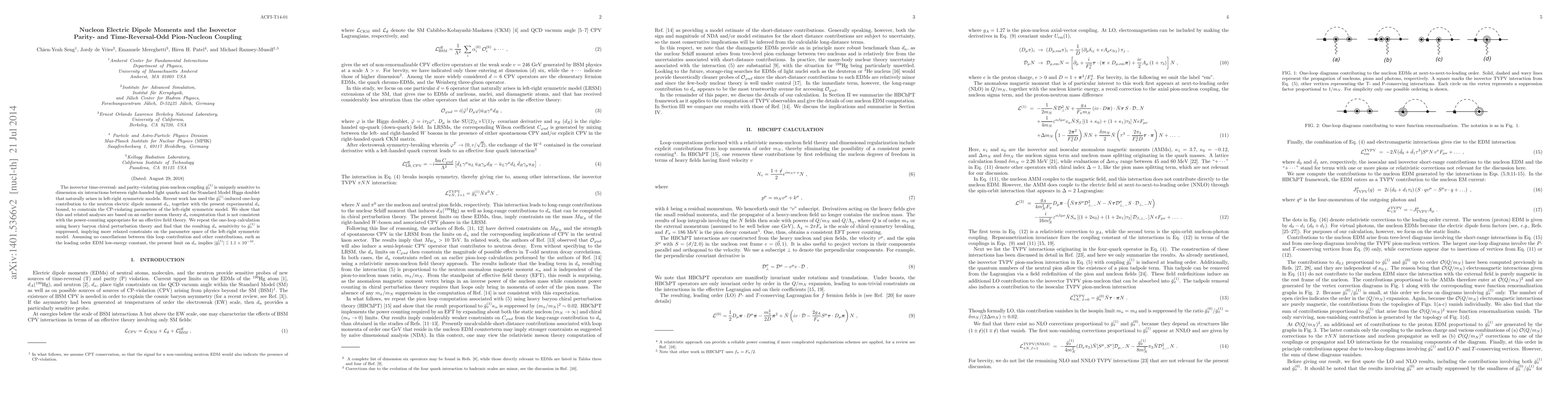 The isovector time-reversal- and parity-violating pion-nucleon coupling $\bar{g}_{\pi}^{(1)}$ is uniquely sensitive to dimension six interactions between right-handed light quarks and the Standard Model Higgs doublet that naturally arises in left-right symmetric models. Recent work has used the $\bar{g}_{\pi}^{(1)}$-induced one-loop contribution to the neutron electric dipole moment $d_n$, together with the present experimental $d_n$ bound, to constrain the CP-violating parameters of the left-right symmetric model. We show that this and related analyses are based on an earlier meson theory $d_n$ computation that is not consistent with the power-counting appropriate for an effective field theory. We repeat the one-loop calculation using heavy baryon chiral perturbation theory and find that the resulting $d_n$ sensitivity to $\bar{g}_{\pi}^{(1)}$ is suppressed, implying more relaxed constraints on the parameter space of the left-right symmetric model. Assuming no cancellations between this loop contribution and other contributions, such as the leading order EDM low-energy constant, the present limit on $d_n$ implies $|\bar{g}_{\pi}^{(1)}| \lesssim 1.1\times 10^{-10}$.