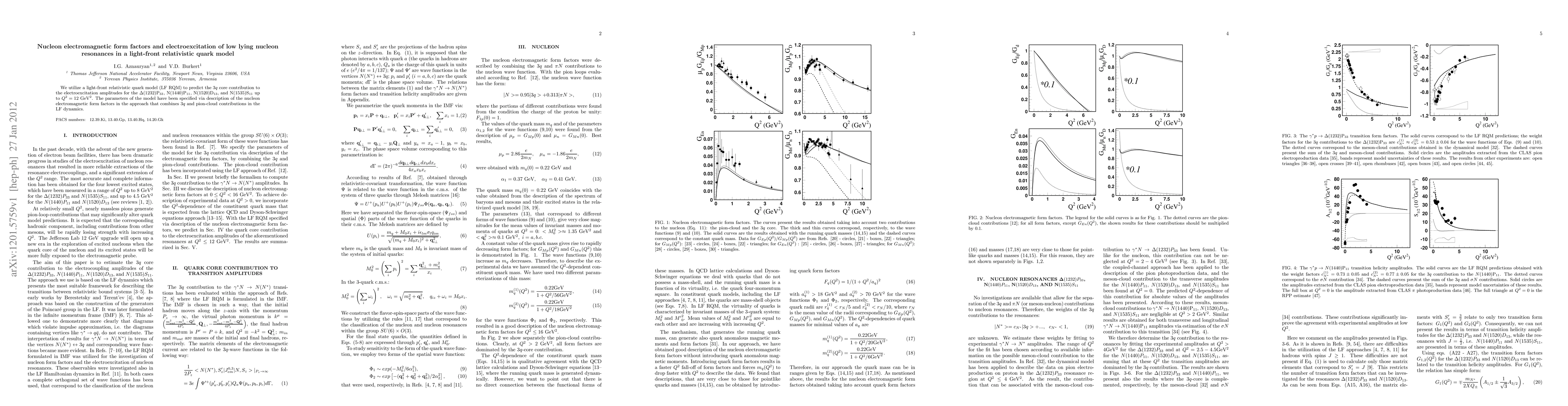 This paper employs a light-front relativistic quark model to predict the electroexcitation amplitudes for several low-lying nucleon resonances, incorporating both 3q core and pion-cloud contributions. The model parameters are determined by fitting the nucleon electromagnetic form factors.