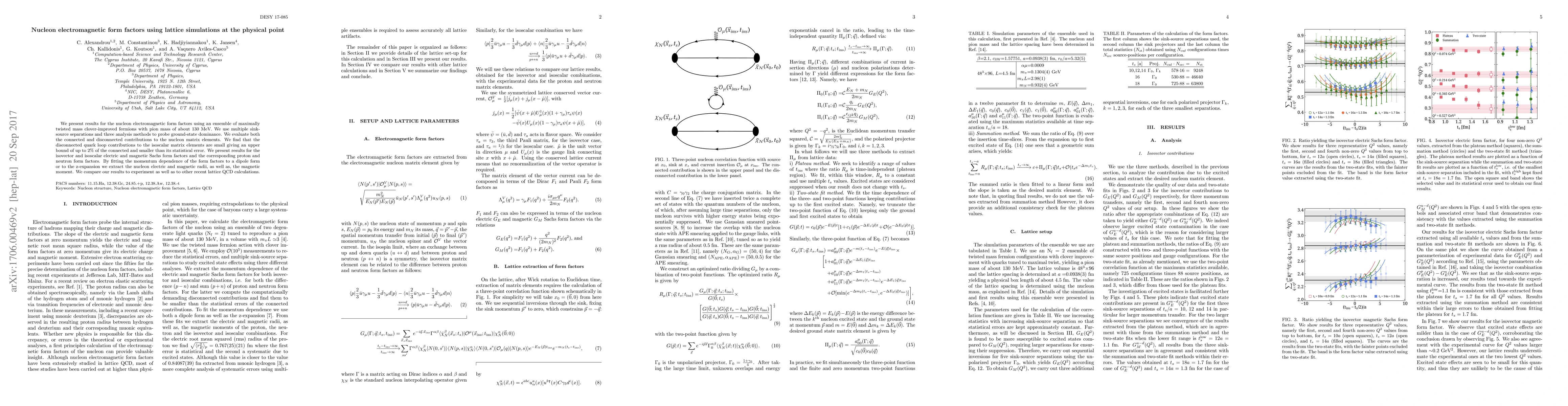 We present results for the nucleon electromagnetic form factors using an ensemble of maximally twisted mass clover-improved fermions with pion mass of about 130 MeV. We use multiple sink-source separations and three analysis methods to probe ground-state dominance. We evaluate both the connected and disconnected contributions to the nucleon matrix elements. We find that the disconnected quark loop contributions to the isoscalar matrix elements are small, giving an upper bound of up to 2$\%$ of the connected contribution and smaller than its statistical error. We present results for the isovector and isoscalar electric and magnetic Sachs form factors and the corresponding proton and neutron form factors. By fitting the momentum dependence of the form factors to a dipole form or to the z-expansion we extract the nucleon electric and magnetic radii, as well as, the magnetic moment. We compare our results to experiment as well as to other recent lattice QCD calculations.
