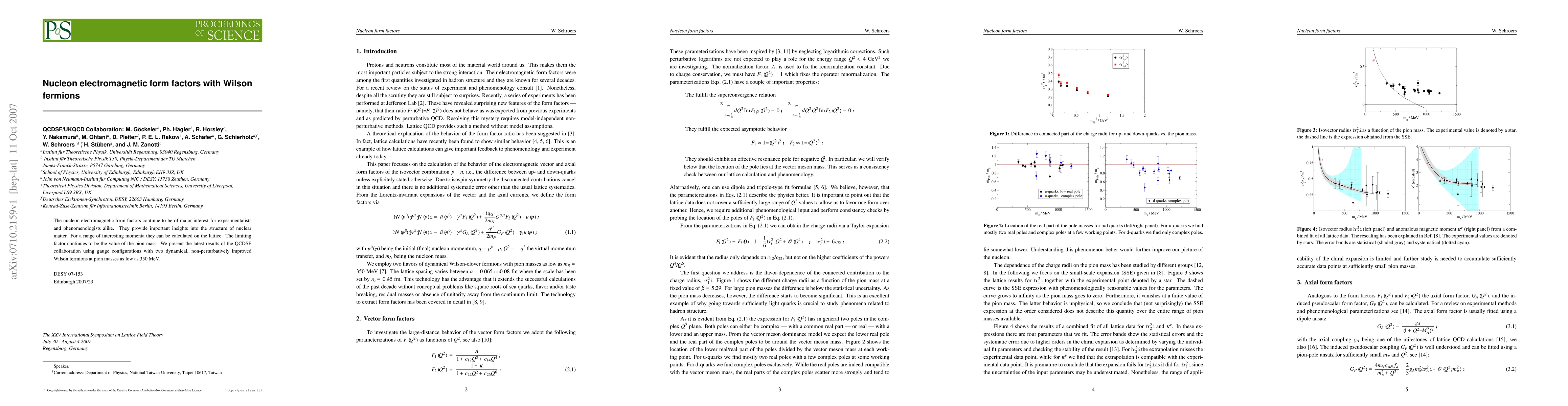 The nucleon electromagnetic form factors continue to be of major interest for experimentalists and phenomenologists alike. They provide important insights into the structure of nuclear matter. For a range of interesting momenta they can be calculated on the lattice. The limiting factor continues to be the value of the pion mass. We present the latest results of the QCDSF collaboration using gauge configurations with two dynamical, non-perturbatively improved Wilson fermions at pion masses as low as 350 MeV.