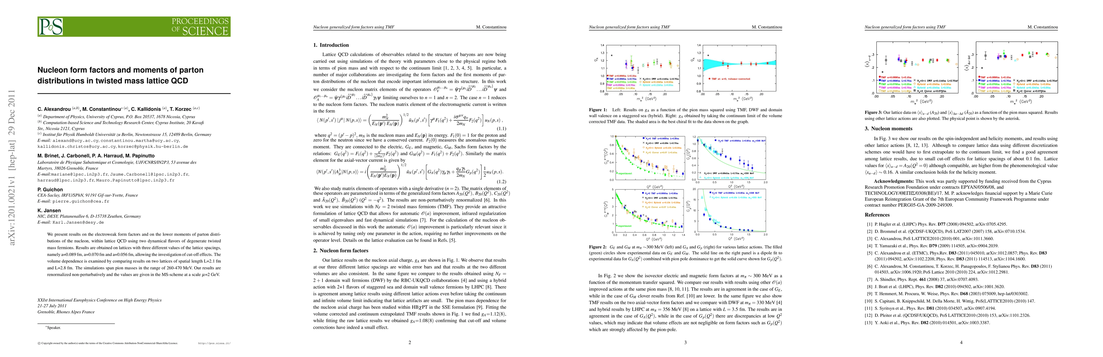 This study explores nucleon electroweak form factors and parton distribution moments using lattice QCD with twisted mass fermions. Results from simulations at varying lattice spacings and volumes help investigate cut-off and volume effects, with pion masses ranging from 260 to 470 MeV, and are renormalized non-perturbatively in the MS-scheme at 2 GeV.