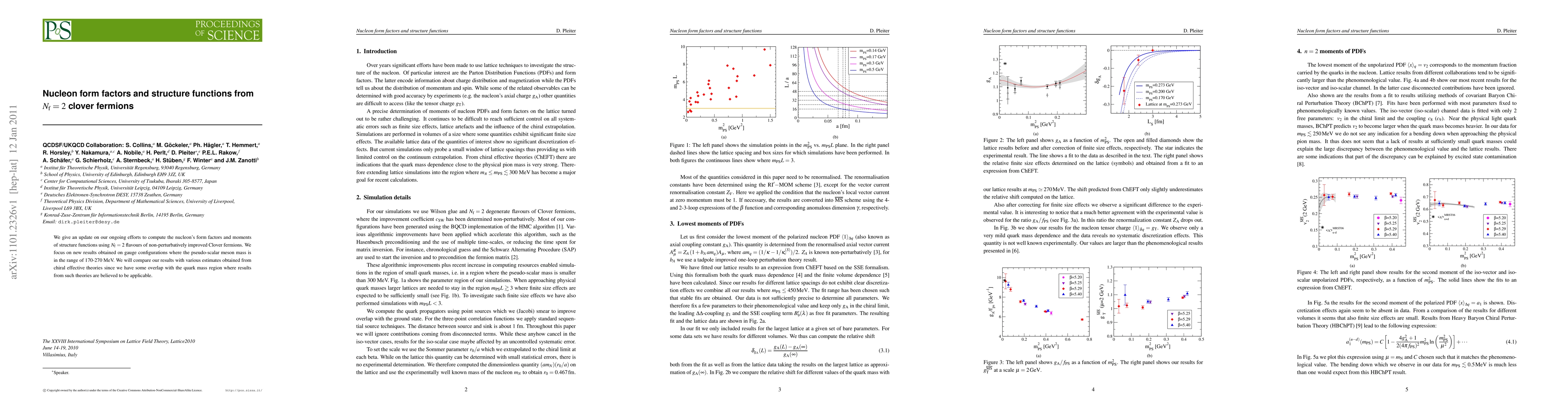 We give an update on our ongoing efforts to compute the nucleon's form factors and moments of structure functions using Nf=2 flavours of non-perturbatively improved Clover fermions. We focus on new results obtained on gauge configurations where the pseudo-scalar meson mass is in the range of 170-270 MeV. We will compare our results with various estimates obtained from chiral effective theories since we have some overlap with the quark mass region where results from such theories are believed to be applicable.