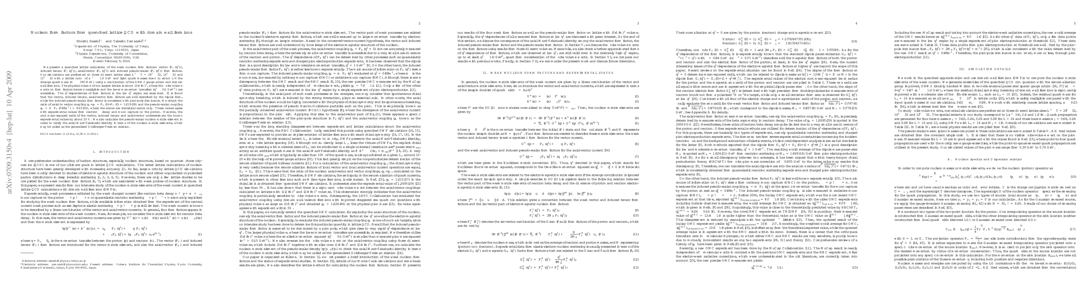 This paper reports a quenched lattice QCD calculation using domain wall fermions to determine weak nucleon form factors. The study finds good agreement with experimental values for the axial-vector to vector coupling ratio and pseudo-scalar coupling, but underestimates the nucleon radii by about 20%.