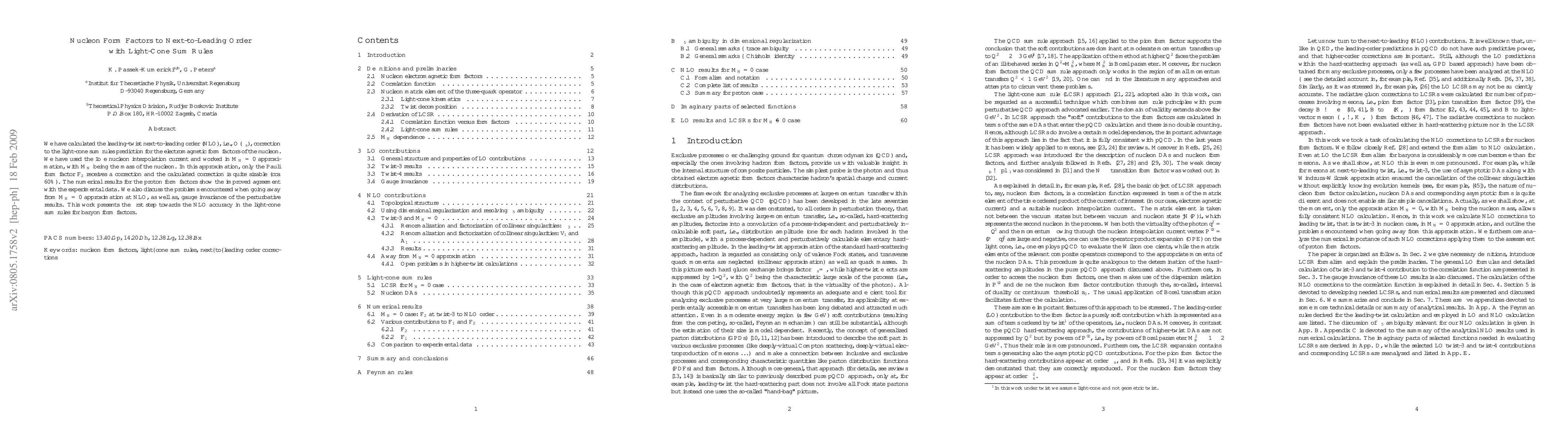 This paper calculates the next-to-leading order corrections to the light-cone sum-rules prediction for nucleon electromagnetic form factors, finding a significant correction (around 60%) to the Pauli form factor F_2. The results show improved agreement with experimental data and discuss challenges in extending beyond the M_N=0 approximation.