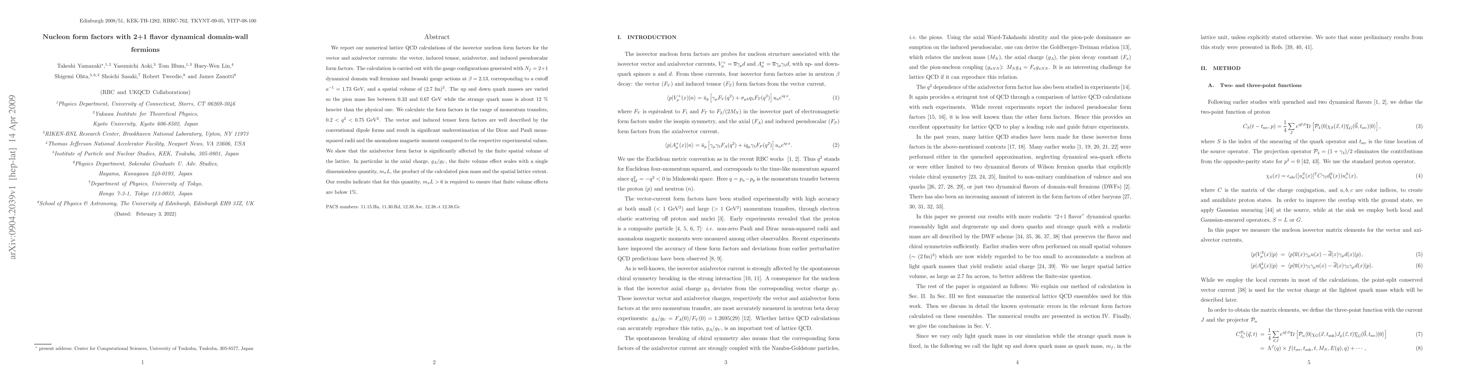 This paper presents lattice QCD calculations of nucleon form factors using 2+1 flavor dynamical domain-wall fermions, finding discrepancies between theoretical predictions and experimental values for vector and axialvector form factors. Finite volume effects significantly impact the axialvector form factor, suggesting m_pi L > 6 is needed to minimize these effects.