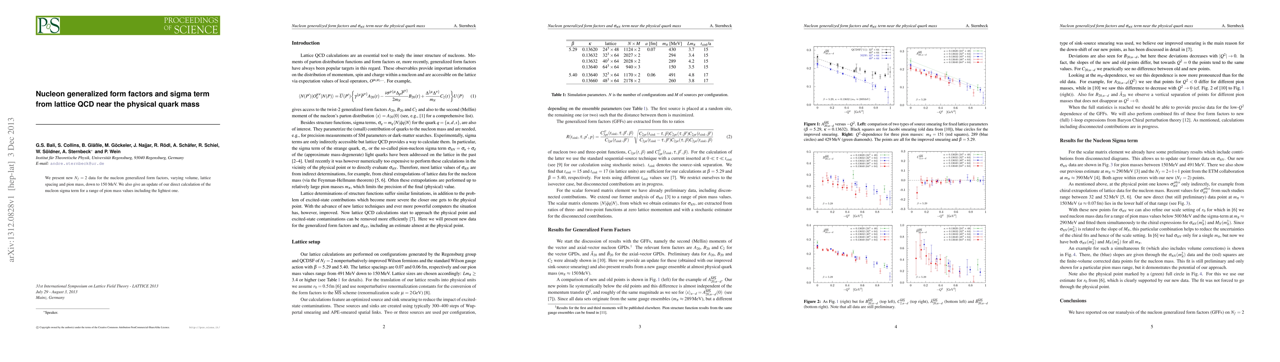 Researchers present new data on nucleon generalized form factors, including the sigma term, using lattice QCD calculations at low pion masses, providing insights into quark interactions near physical mass values.