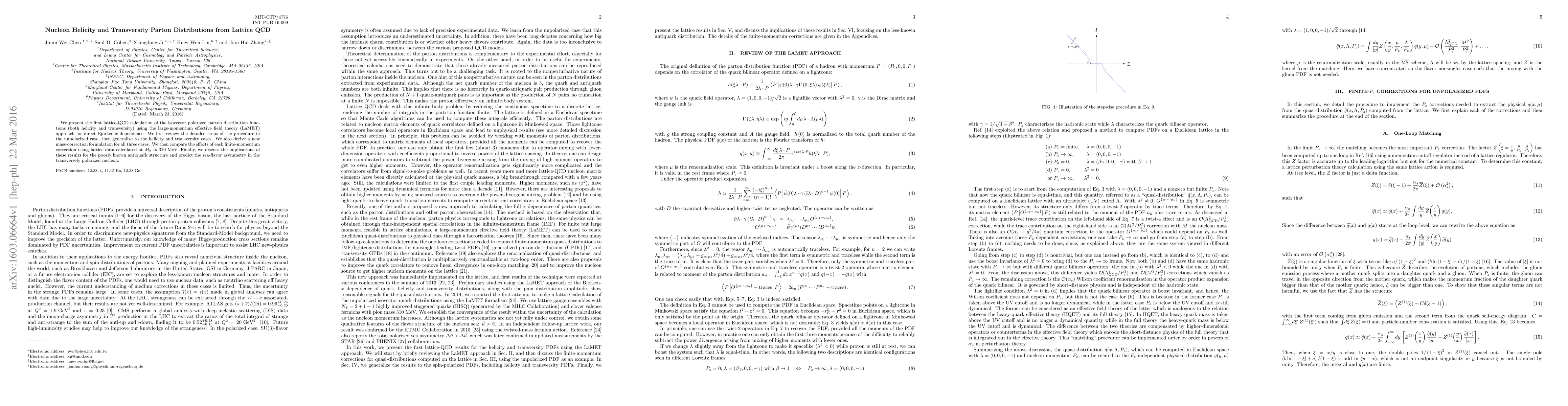 We present the first lattice-QCD calculation of the isovector polarized parton distribution functions (both helicity and transversity) using the large-momentum effective field theory (LaMET) approach for direct Bjorken-$x$ dependence. We first review the detailed steps of the procedure in the unpolarized case, then generalize to the helicity and transversity cases. We also derive a new mass-correction formulation for all three cases. We then compare the effects of each finite-momentum correction using lattice data calculated at $M_\pi\approx 310$ MeV. Finally, we discuss the implications of these results for the poorly known antiquark structure and predict the sea-flavor asymmetry in the transversely polarized nucleon.