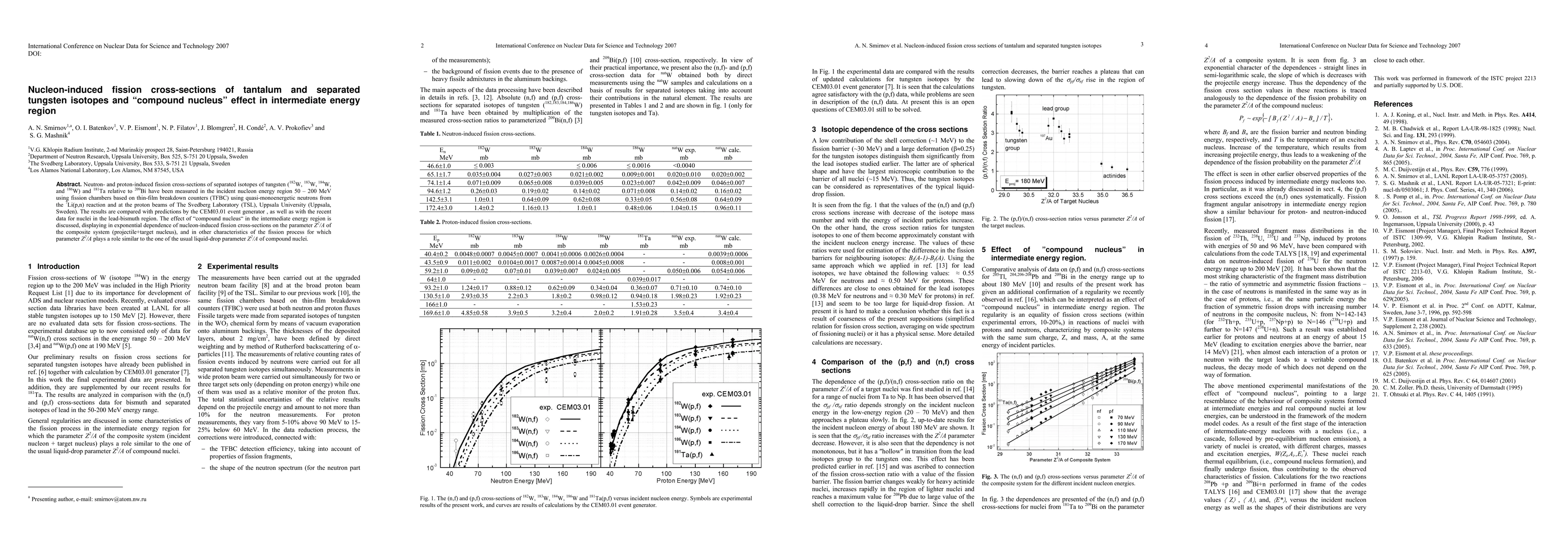 Neutron- and proton-induced fission cross-sections of separated isotopes of tungsten (182W, 183W, 184W, and 186W) and 181Ta relative to 209Bi have been measured in the incident nucleon energy region 50 - 200 MeV using fission chambers based on thin-film breakdown counters (TFBC) using quasi-monoenergetic neutrons from the 7Li(p,n) reaction and at the proton beams of The Svedberg Laboratory (TSL), Uppsala University (Uppsala, Sweden). The results are compared with predictions by the CEM03.01 event generator, as well as with the recent data for nuclei in the lead-bismuth region. The effect of "compound nucleus" in the intermediate energy region is discussed, displaying in exponential dependence of nucleon-induced fission cross-sections on the parameter Z^2/A of the composite system (projectile+target nucleus), and in other characteristics of the fission process for which parameter Z^2/A plays a role similar to the one of the usual liquid-drop parameter Z^2/A of compound nuclei.