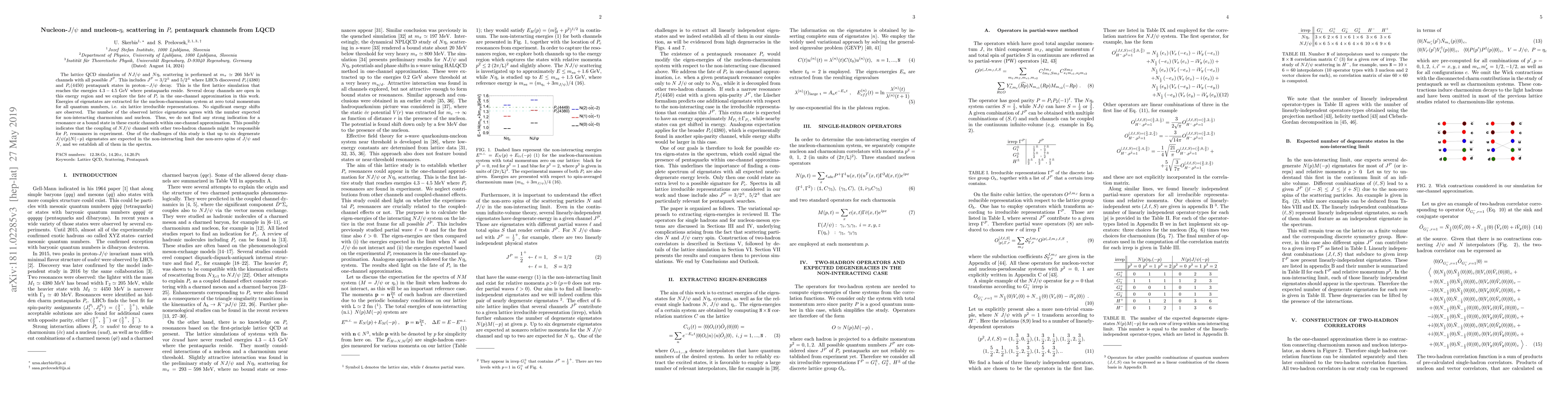 The lattice QCD simulation of $NJ/\psi$ and $N\eta_c$ scattering is performed at $m_\pi\simeq 266~$MeV in channels with all possible $J^P$. This includes $J^P=3/2^\pm$ and $5/2^\pm$ where LHCb discovered $P_c(4380)$ and $P_c(4450)$ pentaquark states in proton$-J/\psi$ decay. This is the first lattice simulation that reaches the energies 4.3-4.5 GeV where pentaquarks reside. Several decay channels are open in this energy region and we explore the fate of $P_c$ in the one-channel approximation in this work. Energies of eigenstates are extracted for the nucleon-charmonium system at zero total momentum for all quantum numbers, i.e. six lattice irreducible representations. No significant energy shifts are observed. The number of the observed lattice eigenstates agrees with the number expected for non-interacting charmonium and nucleon. Thus, we do not find any strong indication for a resonance or a bound state in these exotic channels within one-channel approximation. This possibly indicates that the coupling of $NJ/\psi $ channel with other two-hadron channels might be responsible for $P_c$ resonances in experiment. One of the challenges of this study is that up to six degenerate $J/\psi(p) N(-p)$ eigenstates are expected in the non-interacting limit due non-zero spins of $J/\psi$ and N, and we establish all of them in the spectra.