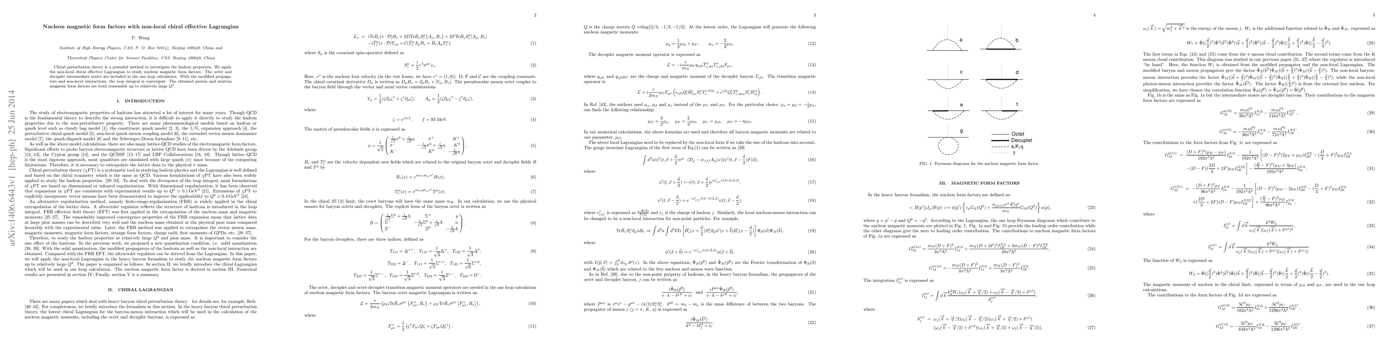This paper investigates nucleon magnetic form factors using a non-local chiral effective Lagrangian within chiral perturbation theory, incorporating octet and decuplet intermediate states. The method ensures convergent loop integrals and provides reasonable results for proton and neutron magnetic form factors up to relatively large momentum transfers.