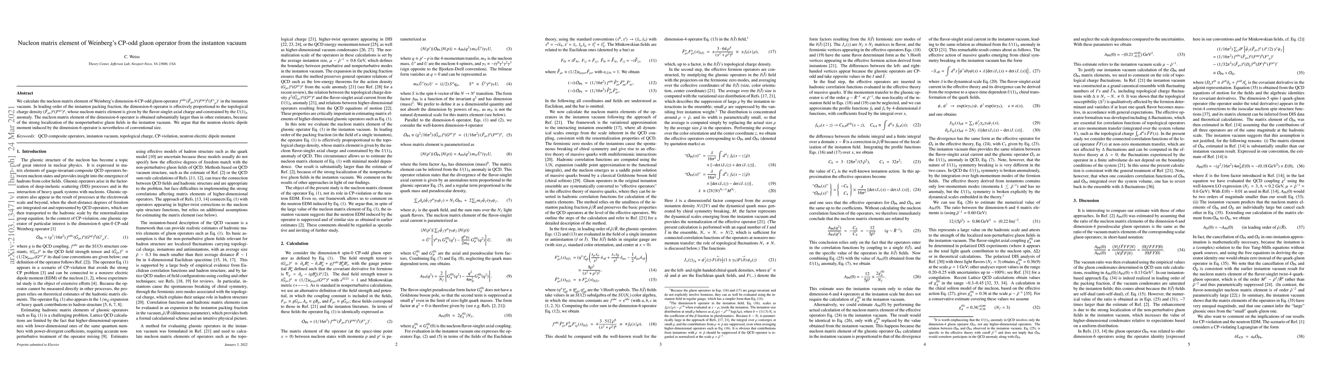This paper calculates the nucleon matrix element of Weinberg's CP-odd gluon operator in the instanton vacuum, finding it significantly larger than previous estimates due to strong gluon field localization. Despite this, the induced neutron electric dipole moment remains conventional in size.