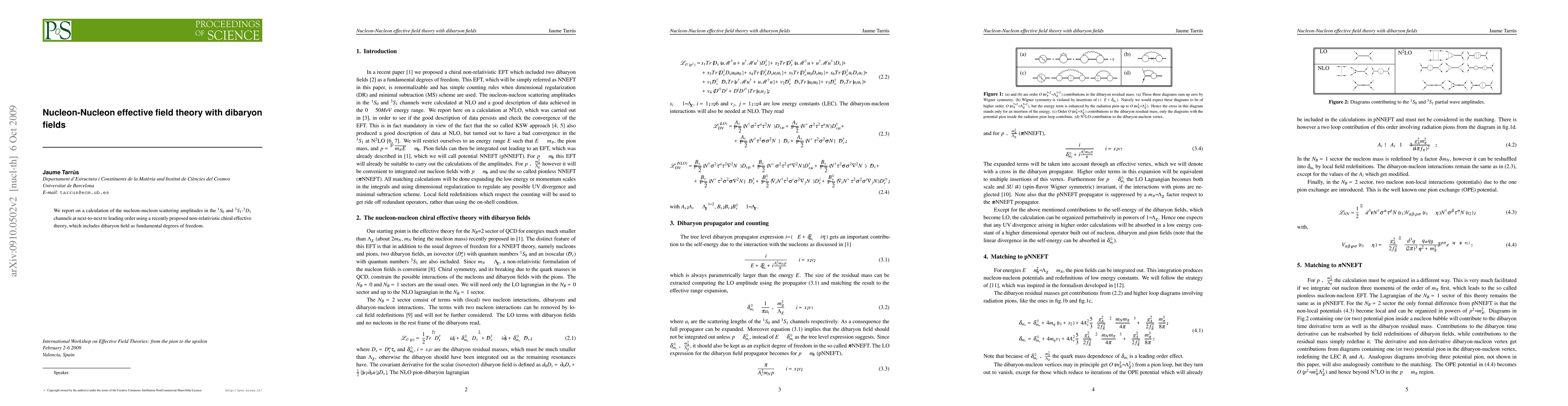 This paper calculates nucleon-nucleon scattering amplitudes in specific channels using a non-relativistic chiral effective theory that incorporates dibaryon fields, providing insights into the underlying interactions at next-to-next to leading order. The results enhance the understanding of low-energy nucleon-nucleon interactions.