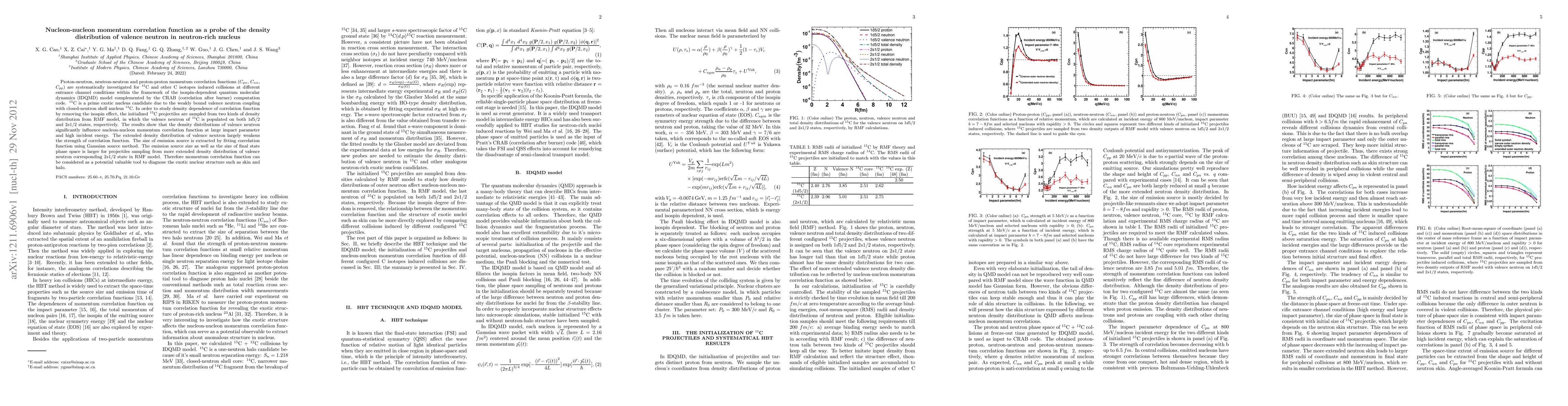 Proton-neutron, neutron-neutron and proton-proton momentum correlation functions ($C_{pn}$, $C_{nn}$, $C_{pp}$) are systematically investigated for $^{15}$C and other C isotopes induced collisions at different entrance channel conditions within the framework of the isospin-dependent quantum molecular dynamics (IDQMD) model complemented by the CRAB (correlation after burner) computation code. $^{15}$C is a prime exotic nucleus candidate due to the weakly bound valence neutron coupling with closed-neutron shell nucleus $^{14}$C. In order to study density dependence of correlation function by removing the isospin effect, the initialized $^{15}$C projectiles are sampled from two kinds of density distribution from RMF model, in which the valence neutron of $^{15}$C is populated on both 1$d$5/2 and 2$s$1/2 states, respectively. The results show that the density distributions of valence neutron significantly influence nucleon-nucleon momentum correlation function at large impact parameter and high incident energy. The extended density distribution of valence neutron largely weakens the strength of correlation function. The size of emission source is extracted by fitting correlation function using Gaussian source method. The emission source size as well as the size of final state phase space is larger for projectiles sampling from more extended density distribution of valence neutron corresponding 2$s$1/2 state in RMF model. Therefore momentum correlation function can be considered as a potential valuable tool to diagnose the exotic nuclear structure such as skin and halo.