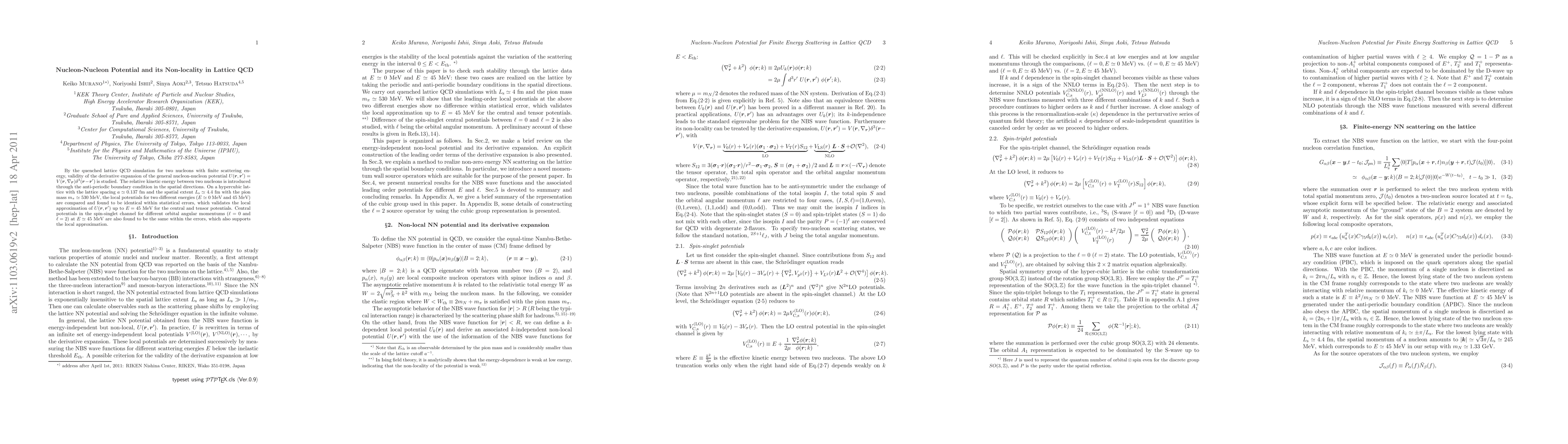 By the quenched lattice QCD simulation for two nucleons with finite scattering energy, validity of the delivative expansion of the general nucleon-nucleon potential U(r,r') = V(r, {\nabla}_r) \delta^3(r-r') is studied. The relative kinetic energy between two nucleons is introduced through the anti-periodic boundary condition in the spatial directions. On a hypercubic lattice with the lattice spacing a ~ 0.137 fm and the spatial extent L_s ~ 4.4 fm with the pion mass m_{\pi} ~ 530 MeV, the local potentials for two different energies (E ~ 0 MeV and 45 MeV) are compared and found to be identical within statistical errors, which validates the local approximation of U(r,r') up to E=45 MeV for the central and tensor potentials. Central potentials in the spin-singlet channel for different orbital angular momentums (l=0 and l=2) at E ~ 45 MeV are also found to be the same within the errors, which also supports the local approximation.