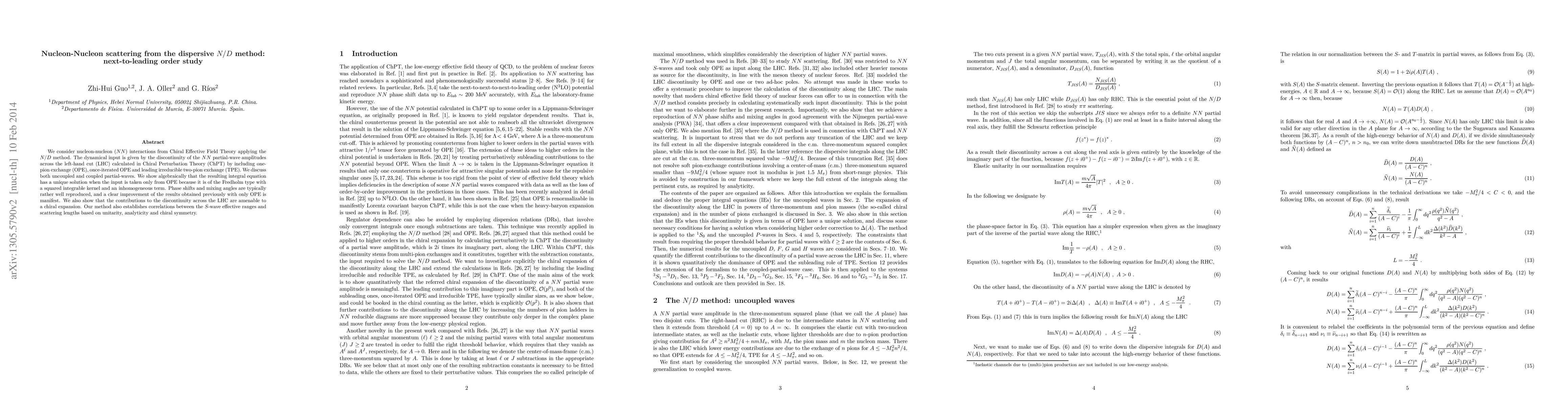 We consider nucleon-nucleon ($NN$) interactions from Chiral Effective Field Theory applying the $N/D$ method. The dynamical input is given by the discontinuity of the $NN$ partial-wave amplitudes across the left-hand cut (LHC) calculated in Chiral Perturbation Theory (ChPT) by including one-pion exchange (OPE), once-iterated OPE and leading irreducible two-pion exchange (TPE). We discuss both uncoupled and coupled partial-waves. We show algebraically that the resulting integral equation has a unique solution when the input is taken only from OPE because it is of the Fredholm type with a squared integrable kernel and an inhomogeneous term. Phase shifts and mixing angles are typically rather well reproduced, and a clear improvement of the results obtained previously with only OPE is manifest. We also show that the contributions to the discontinuity across the LHC are amenable to a chiral expansion. Our method also establishes correlations between the $S$-wave effective ranges and scattering lengths based on unitarity, analyticity and chiral symmetry.