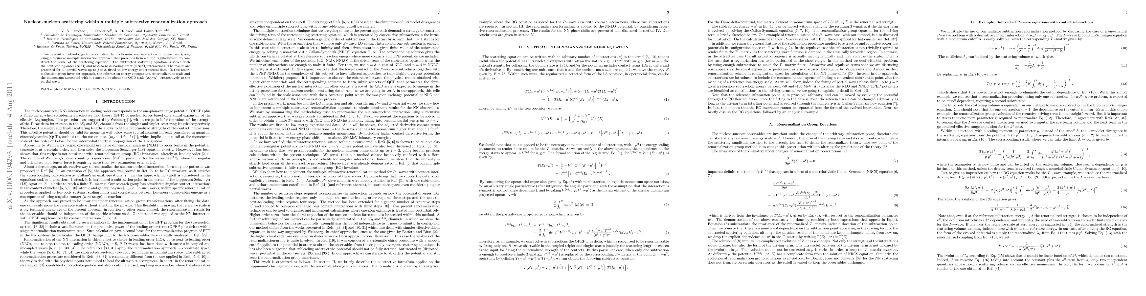 A methodology to renormalize the nucleon-nucleon interaction, using a recursive multiple subtraction approach to construct the kernel of the scattering equation, is presented. We solve the subtracted scattering equation with the next-leading-order (NLO) and next-to-next-leading-order (NNLO) interactions. The results are presented for all partial waves up to $j=2$, fitted to low-energy experimental data. In our renormalizaton group invariant method, when introducing the NLO and NNLO interactions, the subtraction energy emerges as a renormalization scale and the momentum associated with it comes to be about the QCD scale ($\Lambda_{QCD}$), irrespectively to the partial wave.